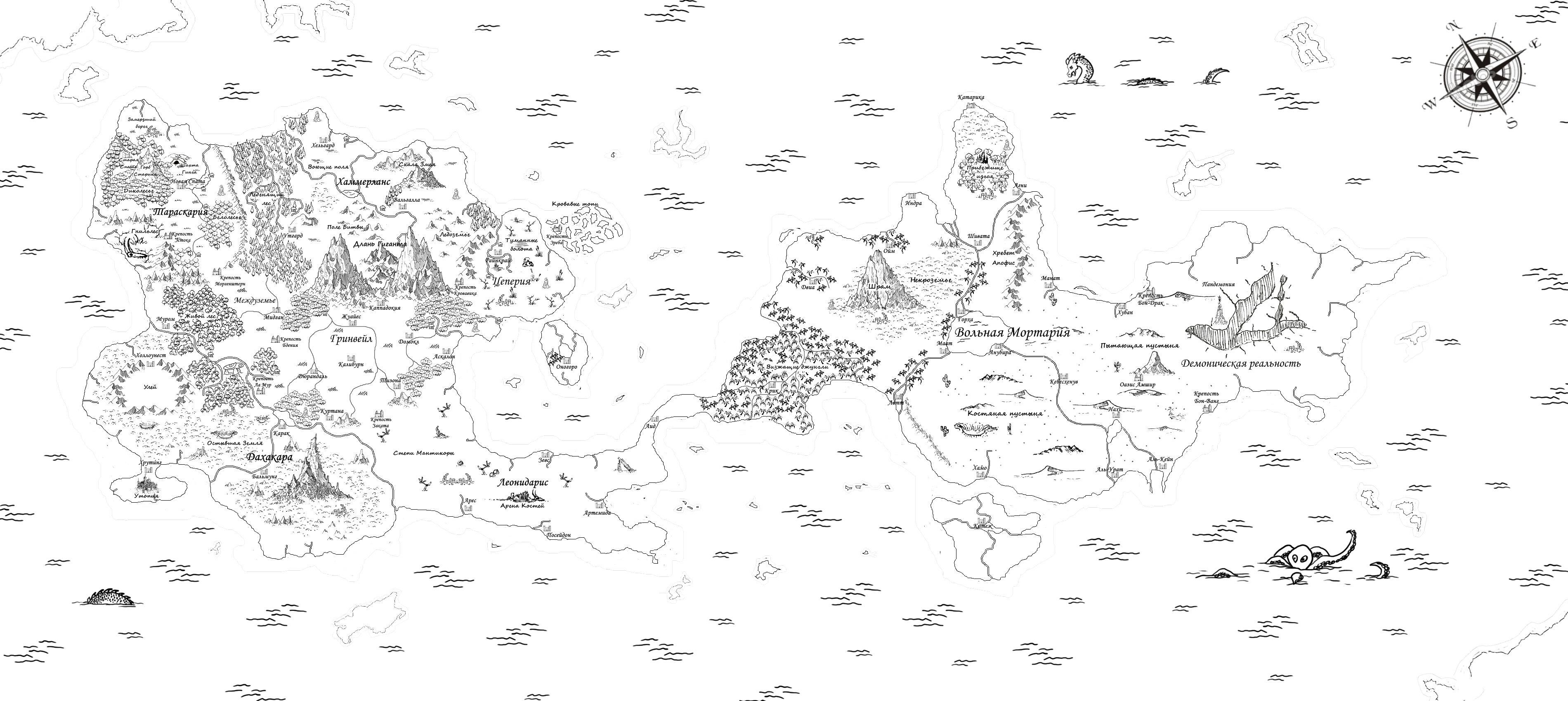 Вот вам небольшая и немного недоделанная карта будущего мира. Я постарался учесть советы моих читателей по поводу рисования карт. Все довольно условно, ибо, я не художник, но постарался как мог. Еще буду допиливать, но общее представление думаю, вы можете получить.