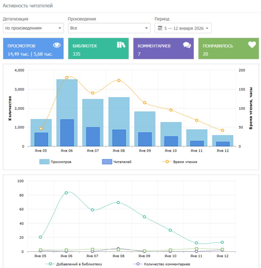 Автор: Привалов СергейВсем салют. После нового года наконец закинул немножко денежек в рекламу на ЯД и был весьма удивлен читательскому наплыву. За восемь дней набралось 335 библов при 15к просмотрах и куче ежедневных часов чтения. К сожалению масса читателей отваливалась после прочтения бесплатного фрагмента первой книги серии и покупок как таковых было не особо что много, но спустя несколько дней пришло понимание что читатель покупает продолжение серии которого нет на пиратских ресурсах