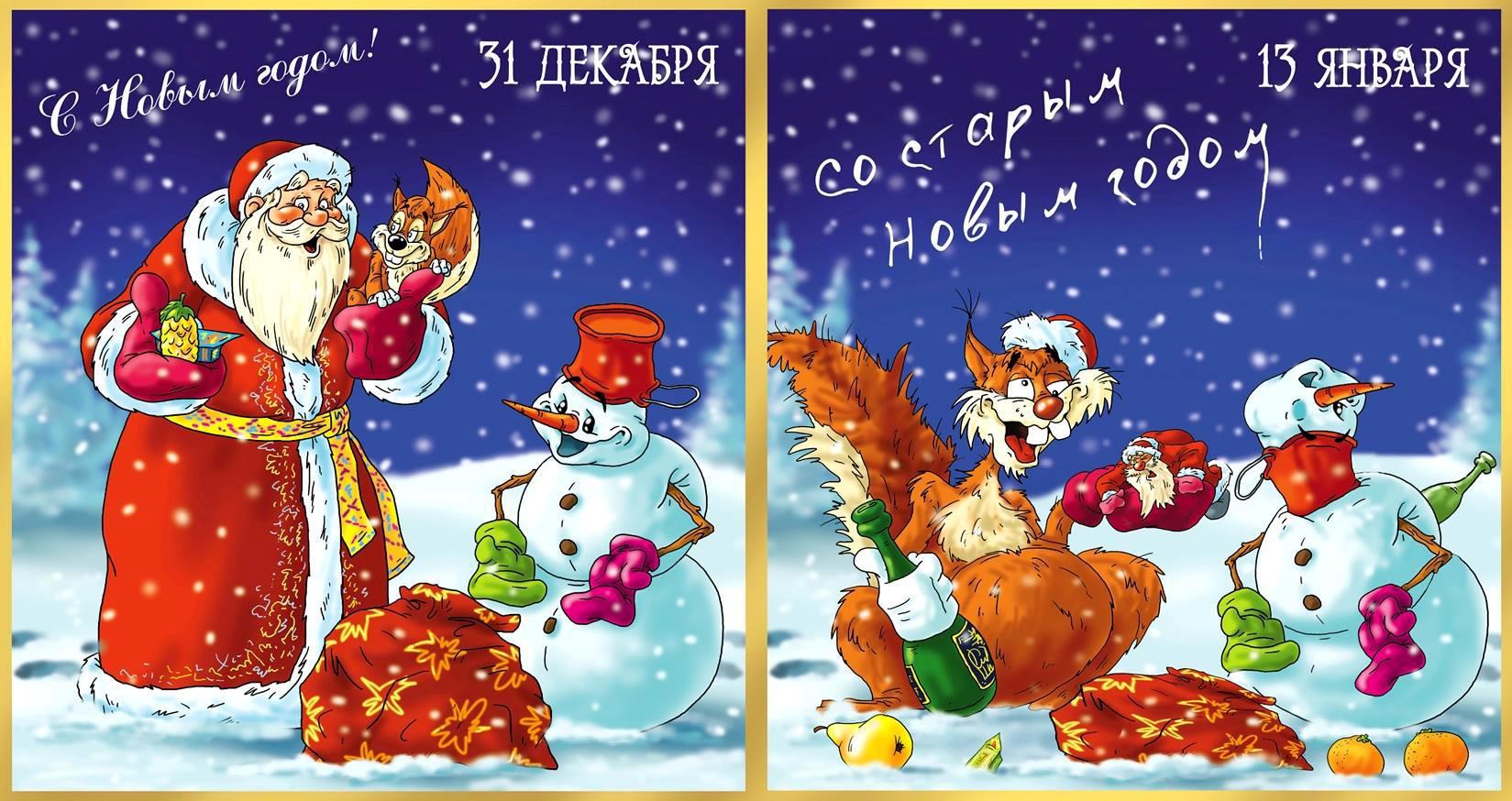 С наступающим вас Старым Новым годом, дорогие друзья! Весёлые картинки и мультики от моего художника
