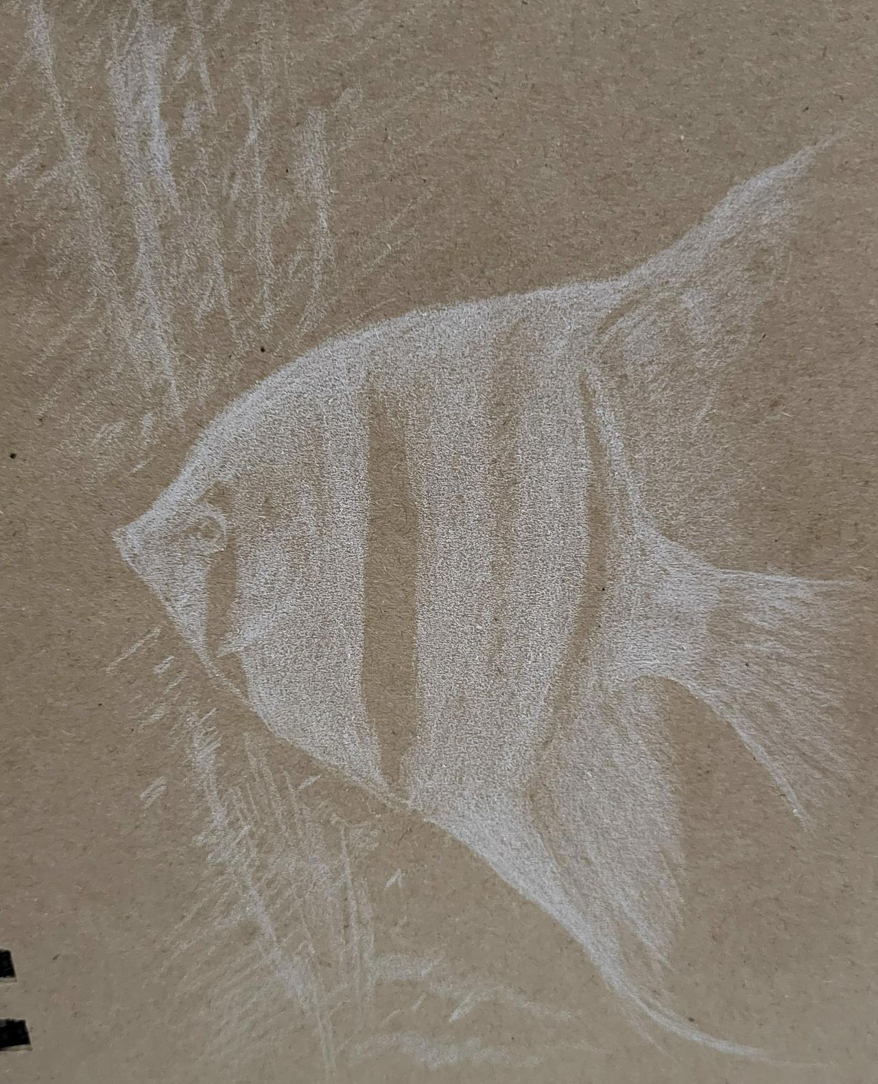 И рыбка. Бежевую бумажку пробовала в деле. Сложнее рисовать, контрастность меньше.