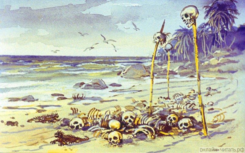 Сначала человеческий след на песке, страх, болезни, мысли о нечистой силе. Потом дым, туземцы, страшные пиры и решение вмешаться.