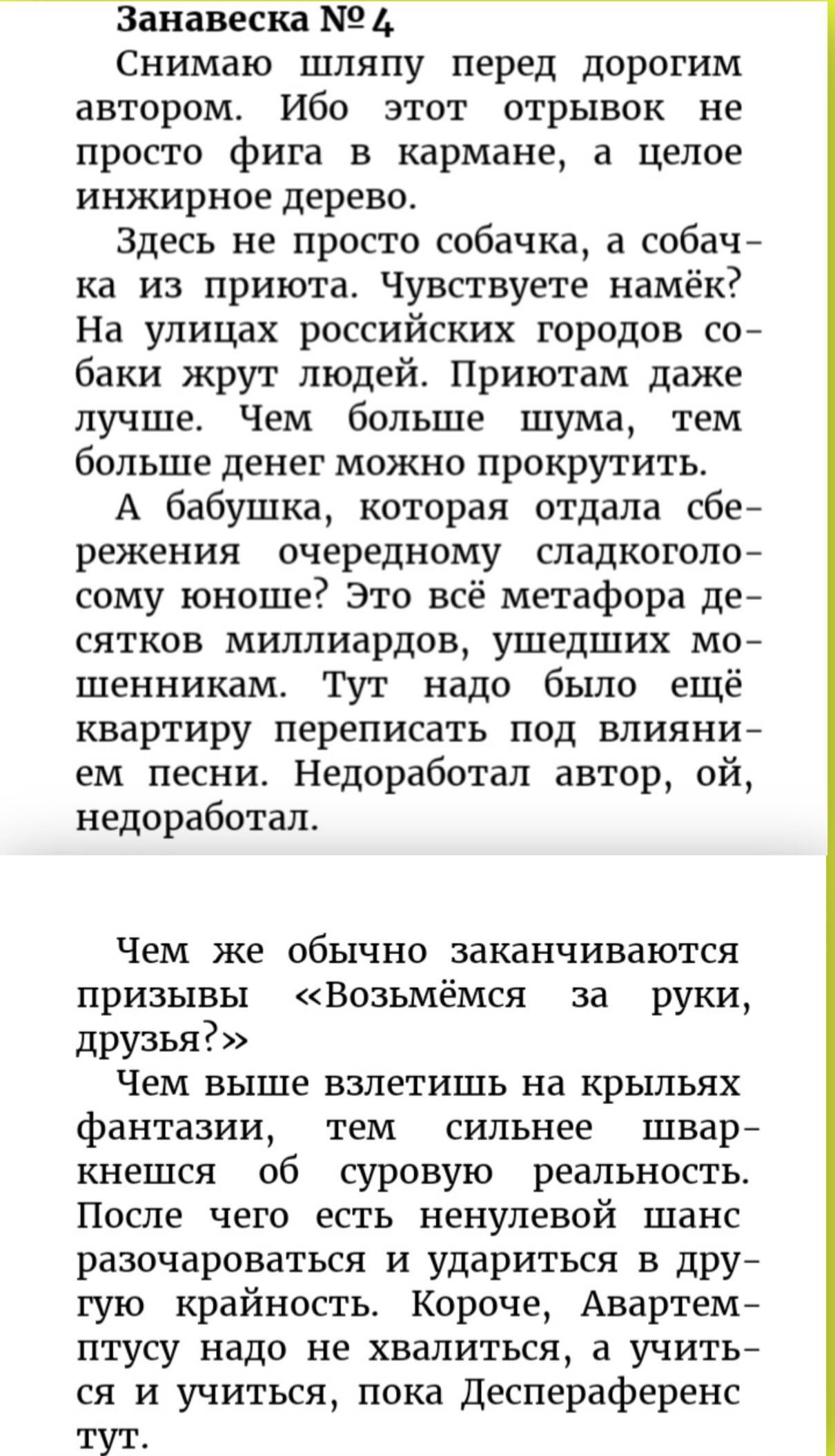 Чувак, кто бы ты ни был, запомни. Каждый раз, когда собака нападает на человека, в этом виноват человек. Всегда. И ты зря не веришь в людей. Ещё есть те, кто способен подняться с карачек и перестать облизывать идол бренда, услышав песню.