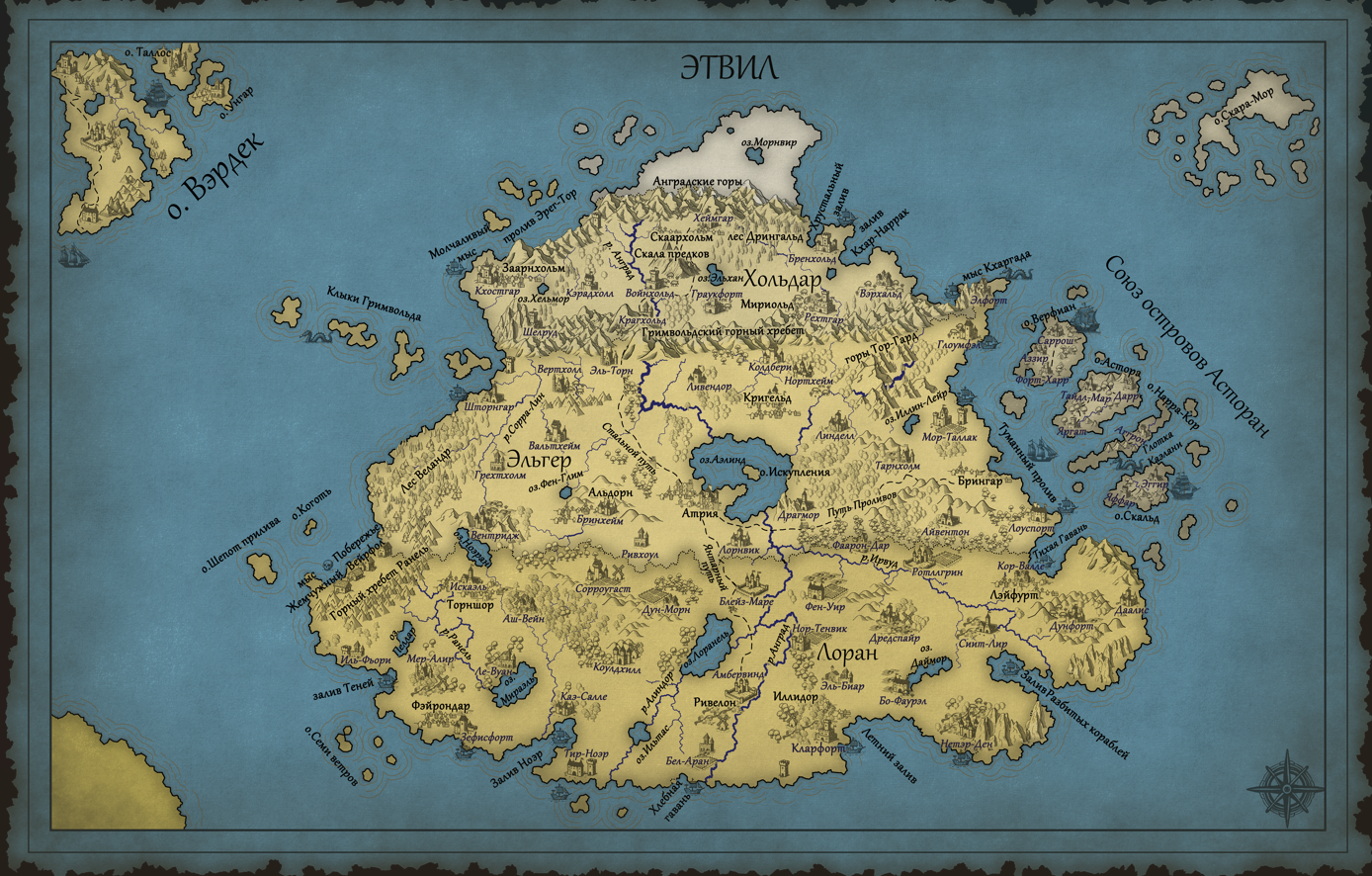 Я верю, что мир не должен гнуться под сюжет, как декорация («нам нужно, чтобы герой заблудился — пусть здесь будет лес»). Для меня убедительная история рождается иначе: сначала ты создаешь живой, дышащий мир со всеми его неудобствами и законами, а потом заставляешь своих героев решать проблемы, исходя из этих жестких условий. И именно из этого сопротивления, из необходимости считаться с расстояниями, ресурсами и географией рождается самое интересное напряжение и самая честная история. Карта — это договор с читателем о том, что правила игры реальны.