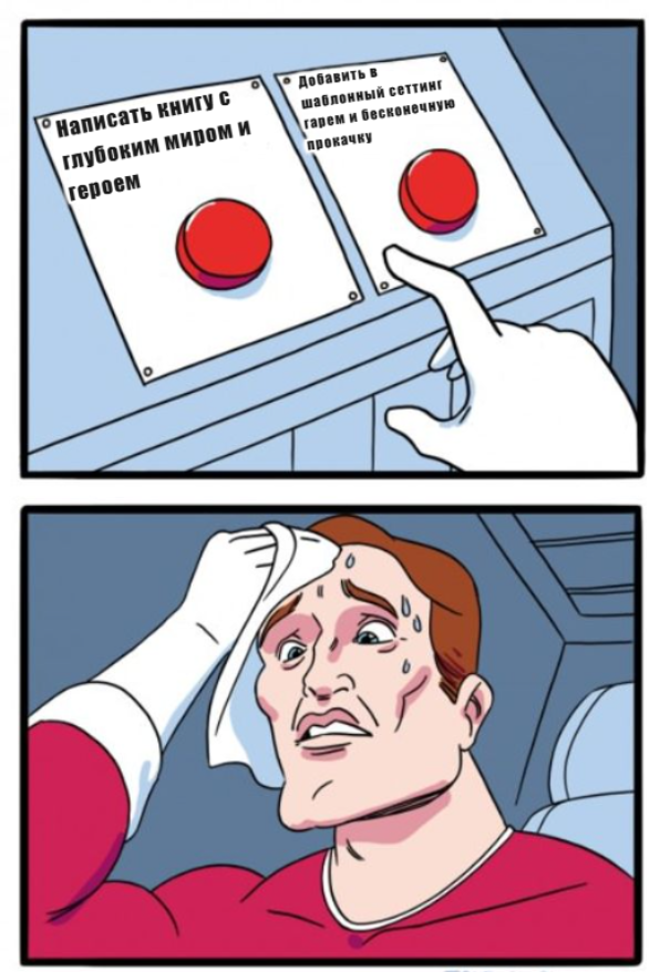 Нормальное фэнтези и научная фантастика, где нужно думать, отошли на второй план из-за этих жанров. Дело не в том, что боярки такие шикарные сами по себе, а в том, что они дают людям то, чего те хотят прямо сейчас. Им не нужно создавать мир или героя. Нужно просто дать читателю то, чего он жаждет: почувствовать себя крутым, всемогущим, чтобы наш герой победил, собрал гарем или просто залип в бесконечной прокачке.