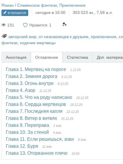 Роман, который выкладывается по главам, мелькает на главной.... и ничего.
