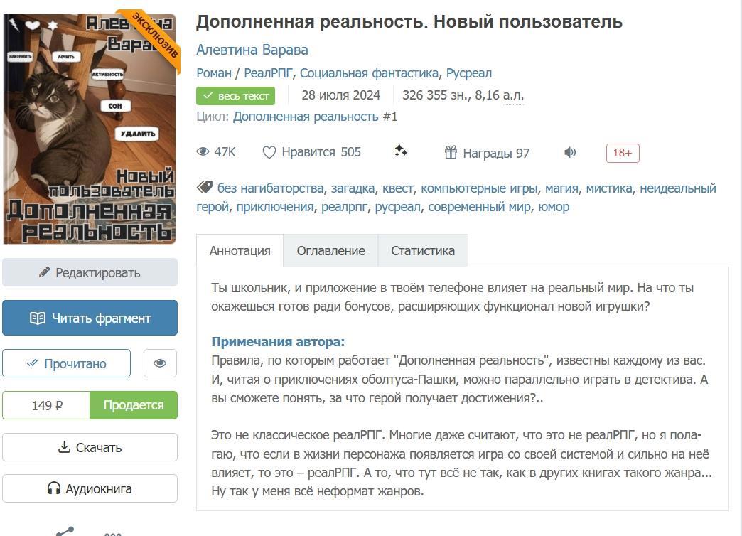 Книги сто процентов неформатные, любителям классических приёмов реалРПГ не сюда. Жанр такой стоит лишь потому, что словарному определению история отвечает: обычная жизнь ГГ сильно меняется из-за появления колдовской игры со своей системой прокачки и расширения возможностей.