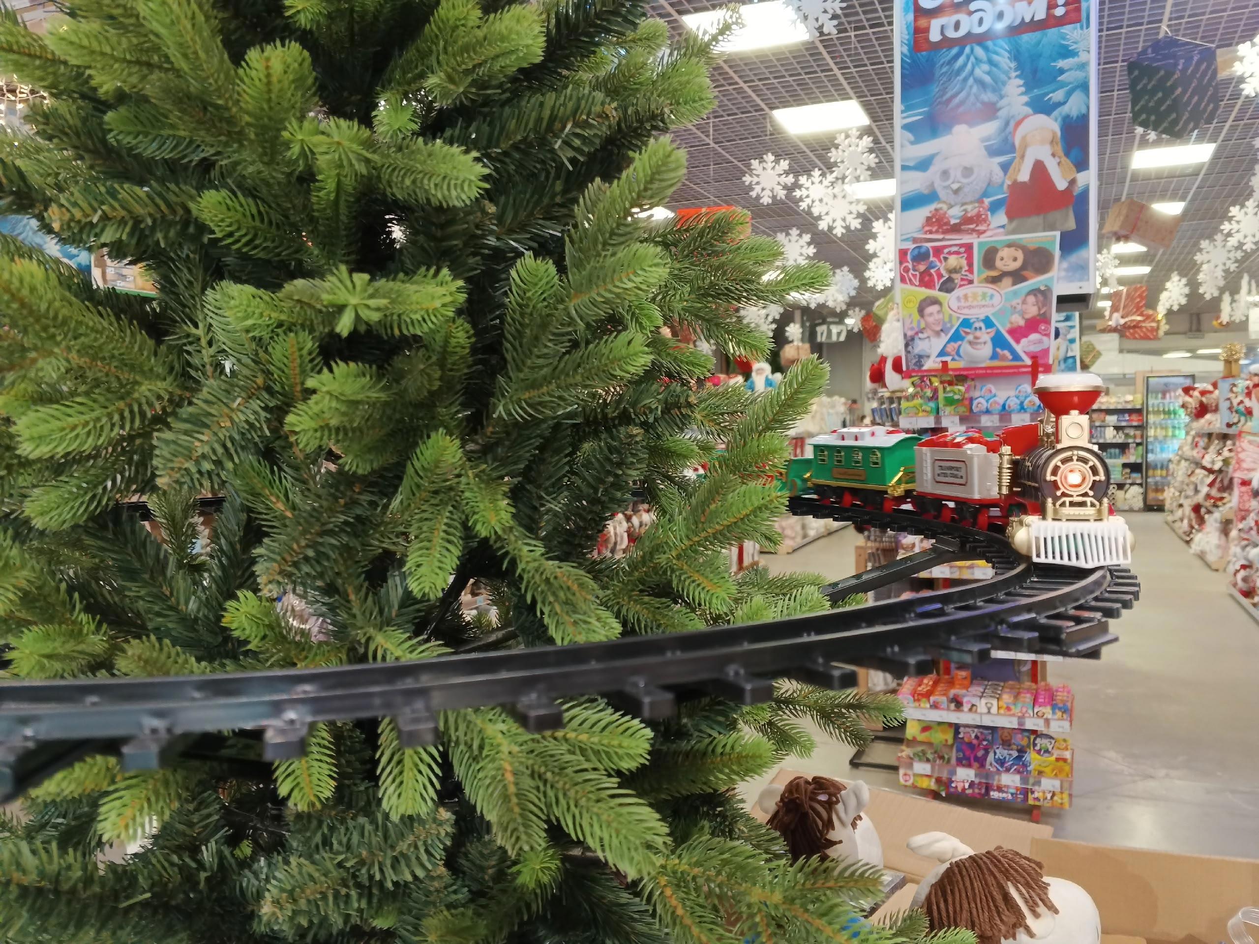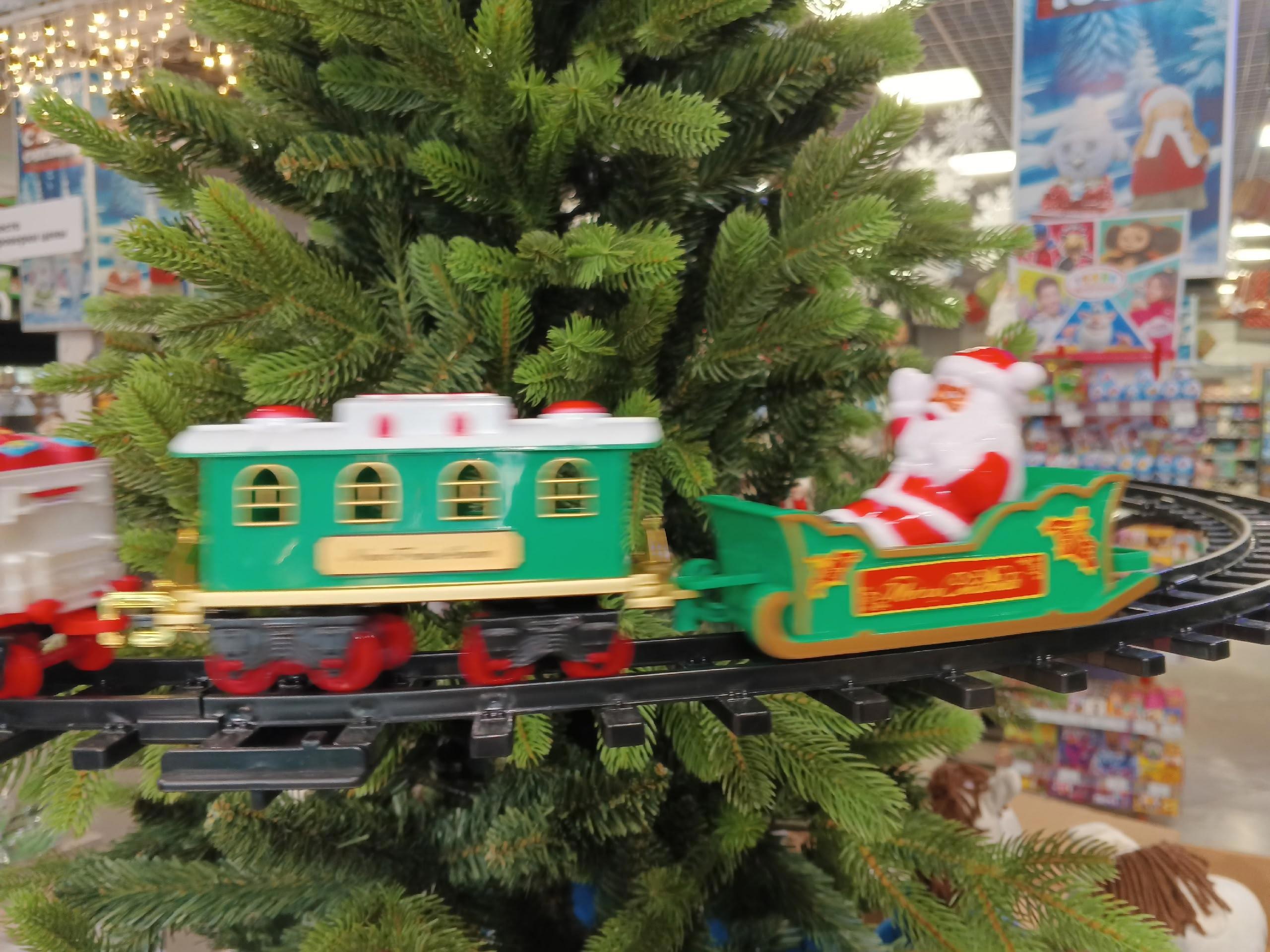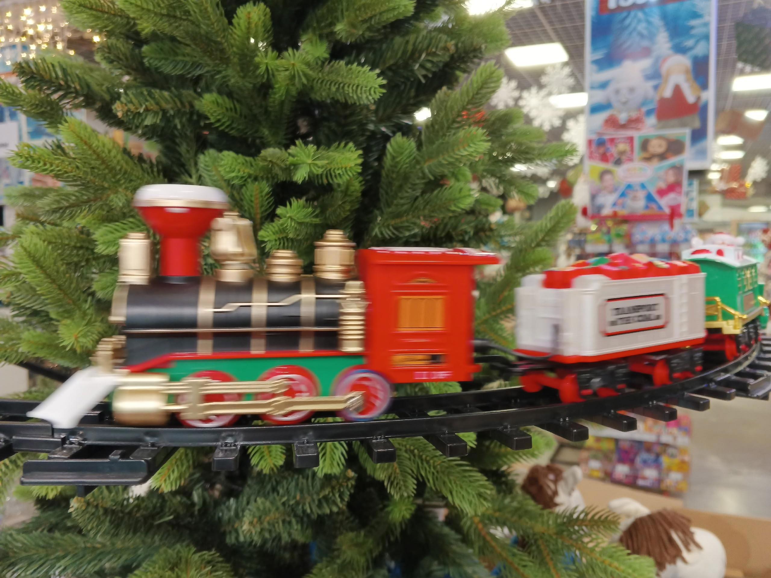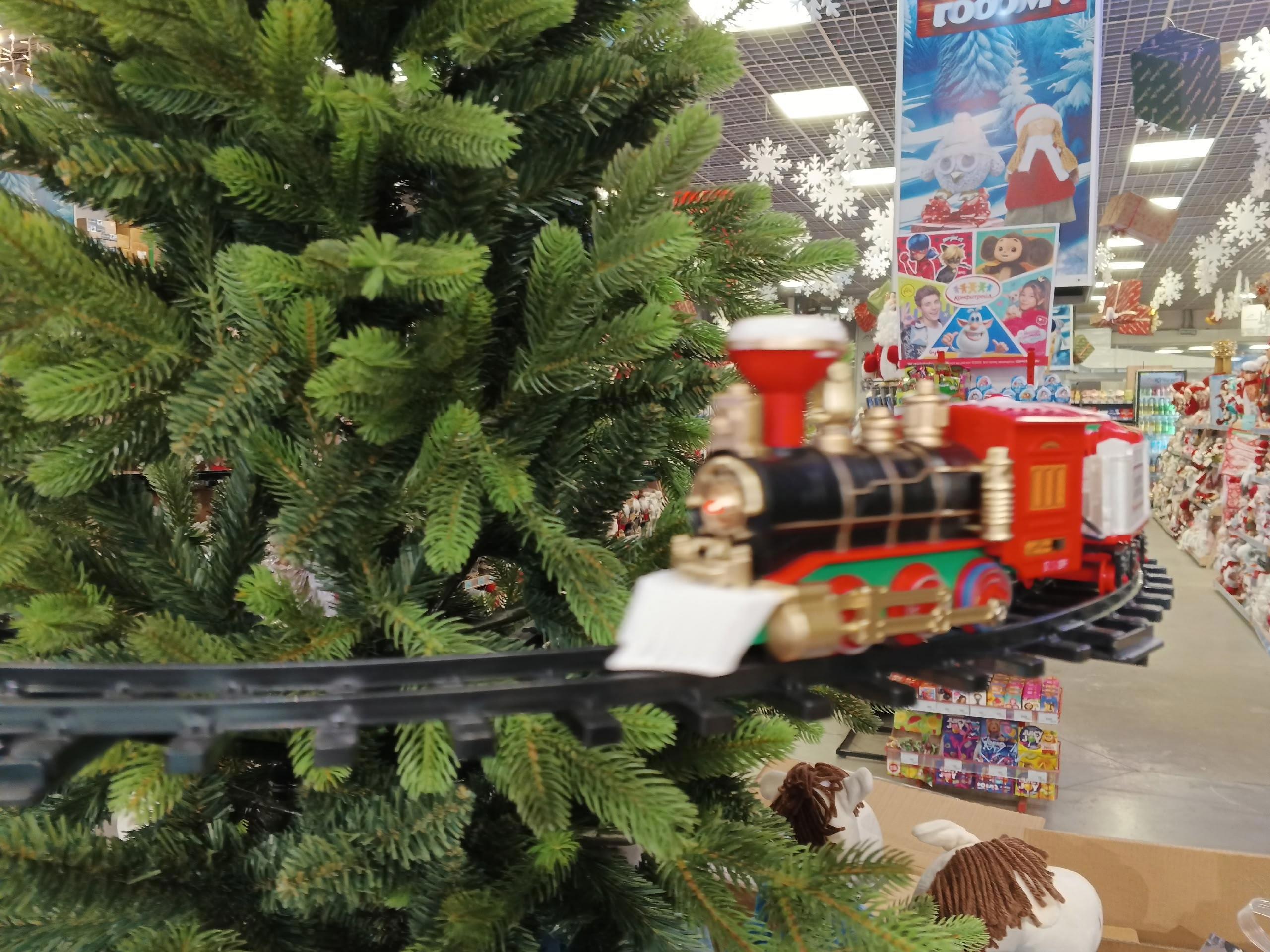 И, не знаю как было в других регионах, а у нас в этом году многие магазины украшали детскими железными дорогами... Причём, железная дорога крепилась на самой ёлке. Это было феерично.