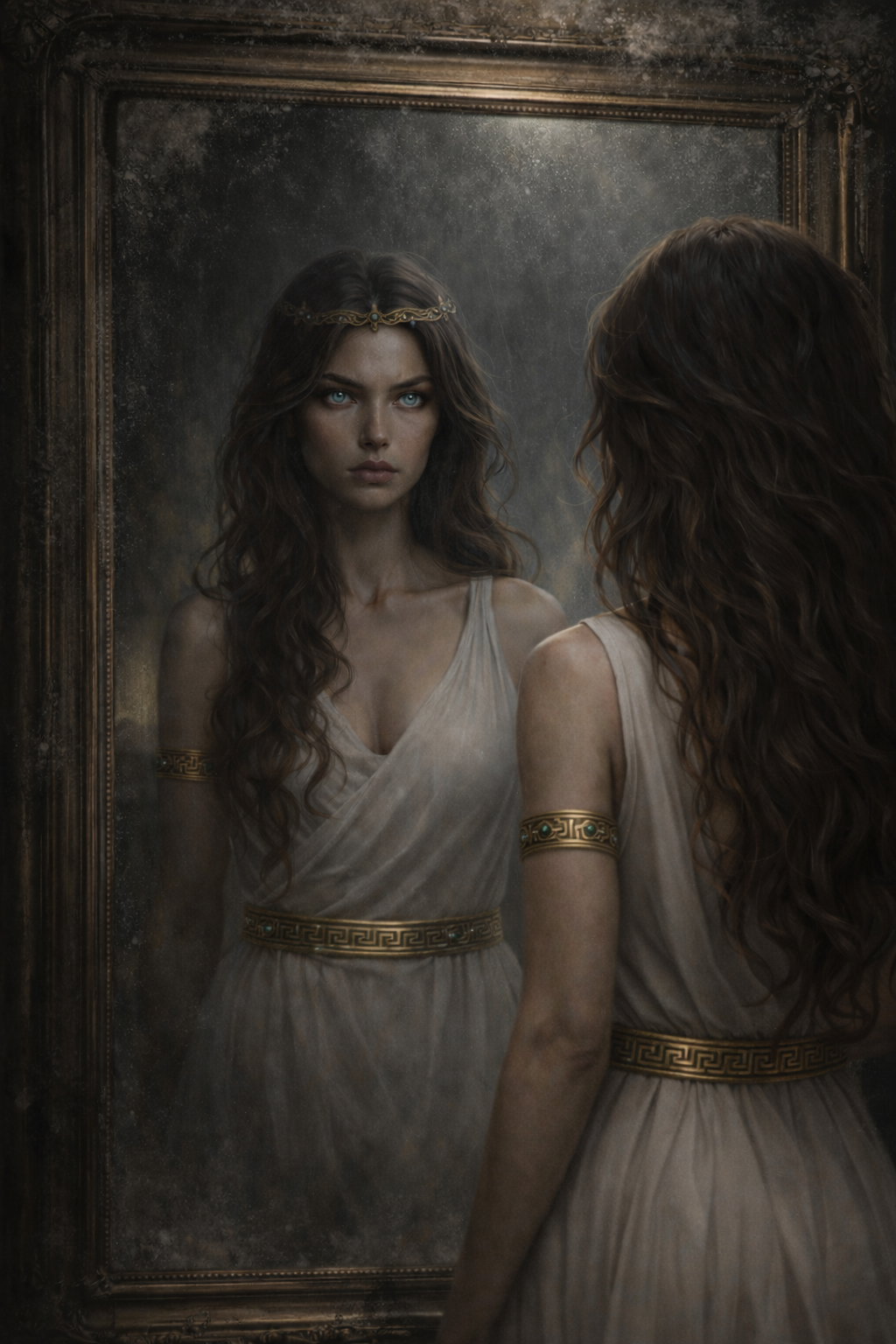 Силуэт напротив вглядывался в меня, копировал движения, но это была не совсем я. По коже пробежали мурашки. Девушка в зеркале выглядела старше. Увереннее. Черты лица стали резче, менее симметричны. Длинные и тёмные волосы мягко ложились на плечи, обволакивая тело. Белоснежная туника подчёркивала фигуру, а вся она была усыпана украшениями, которые олимпийцы могли заработать подвигами, лишь восславив свое имя.