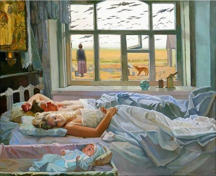 Это такой знатный художник Е. Папко, оченно патриотичный. "Утро 22 июня 41 года". Я, как глянул, чем-то забытым, но родным, из детства повеяло... дума-думал, и вспомнил.