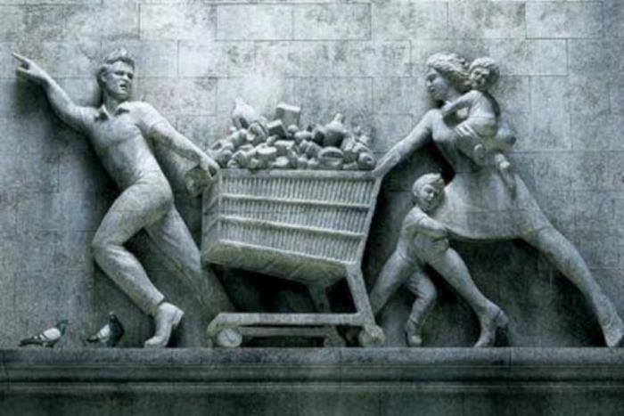 В книжном магазине. Секция постапокалиптической фантастики перенесена в "Текущие События"