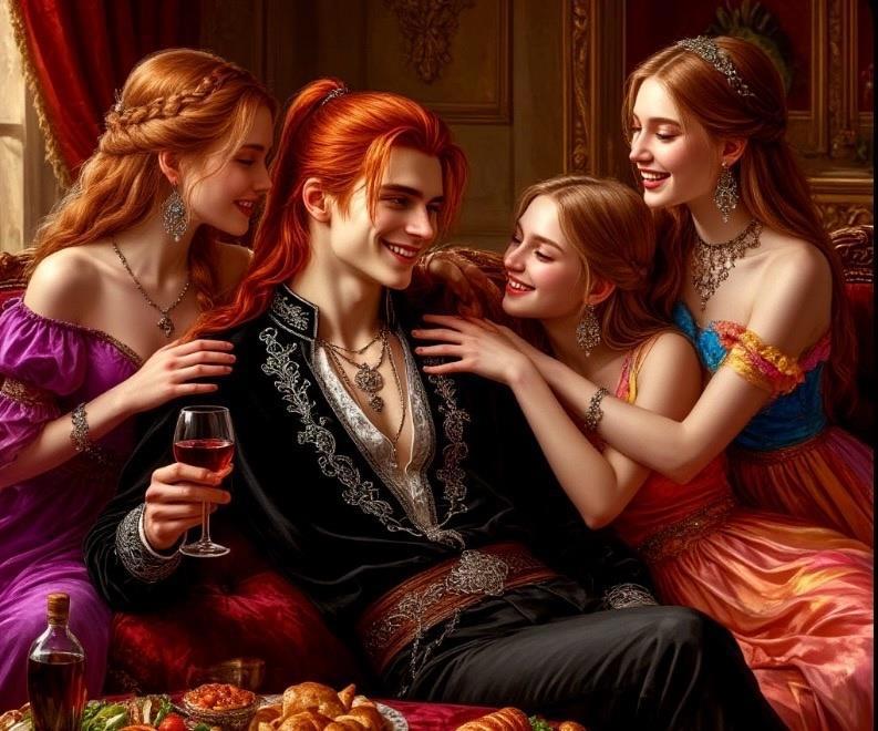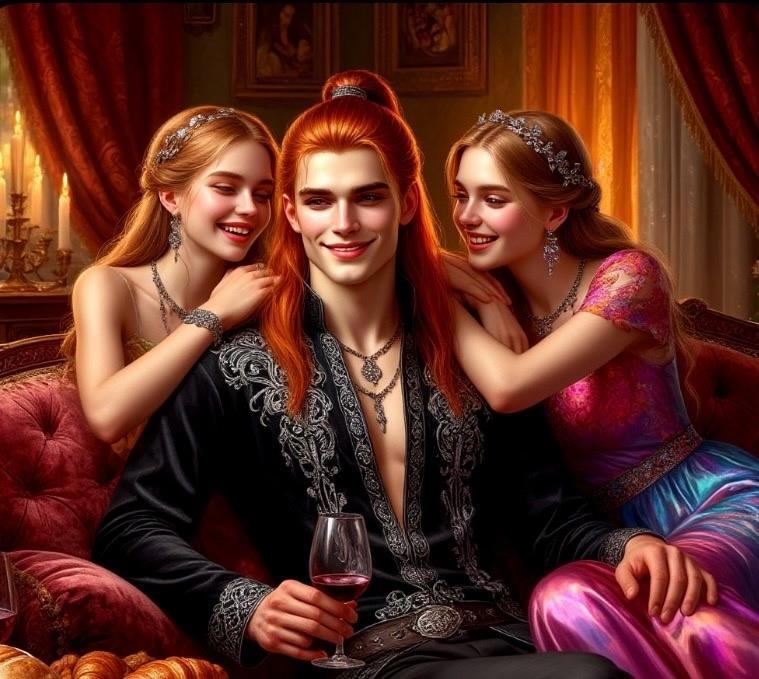 Автор: анна югай" Он был довольно прелестен собой, имел курносый нос и выразительные зеленые глаза. Его темно-рыжие волнистые волосы... Он разбрасывался деньгами, словно грязью. Ел и пил всегда все самое лучше, носил все самое дорогое, пользовался дорогими и редкими мазями и шампунями. Времяпрепровождения у него тоже было довольно денежно затратным. Это и соколиная охота, балы, и конечно же дорогие бордели".