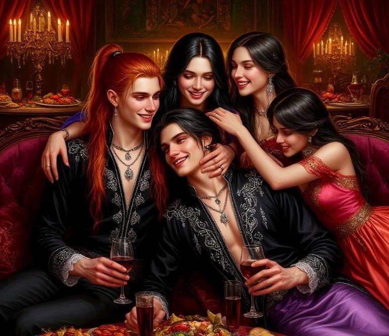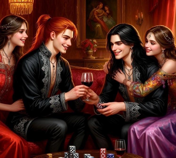 "Россис платил ни только за женщин, но и за выпивку и угощения. Он часто давал деньги девушкам сверху, и порой просто выпивал с ними или играл на музыкальных инструментах. Делал он это ни только потому, что семья его была богата и могла разбрасываться деньгами направо и налево, но и потому, что Россис знал, что Велес не мог тратить деньги на подобные развлечения, так то были деньги отца, а не его. Радар тщательно следил за тратами сына, он как будто чуял, какие деньги Велес тратил на себя лично, а какие отдавала блудницам в Красных лилиях. И чтобы не выдавать Велеса, Россис брал все расходы на гулянки на себя, и не требовал от Велеса ничего, кроме его собственного присутствия".