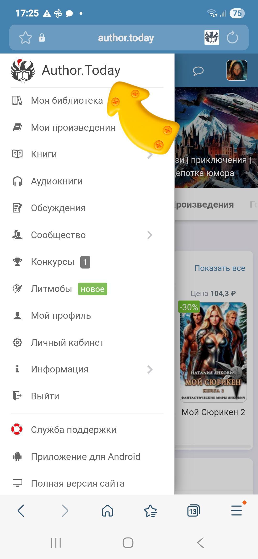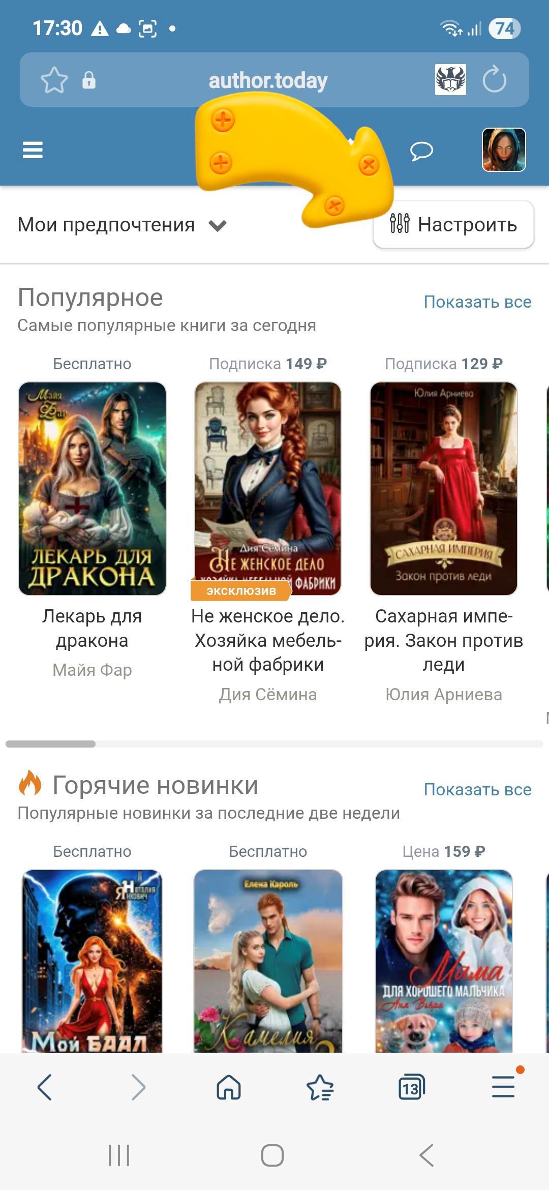 А еще можно подписаться на Литмоб и быть в курсе выхода новых глав и всех новинок тут https://author.today/litmob/2