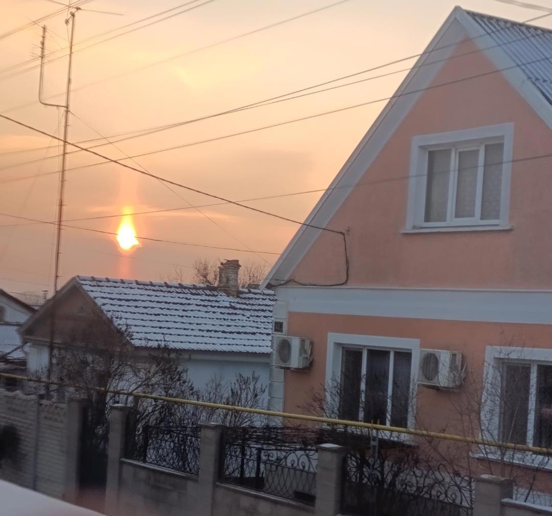 Автор: Terra-21 Виктор ЧебаковСветовой столб под и над солнцем зимним вечером в Бахчисарае 16.01.2026 в 17:07 и при -11°С.