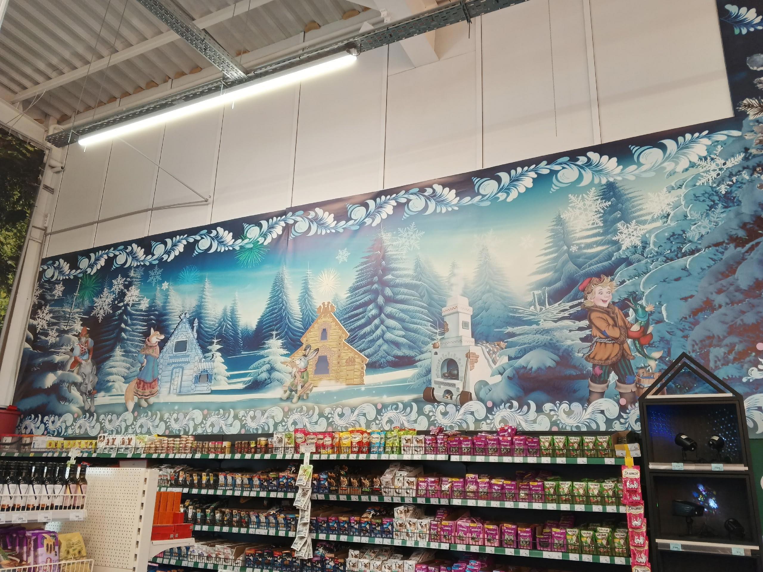 А дальше, на всю огромную стену герои любимых русских сказок, которые связаны между собой именно зимой и новым годом.