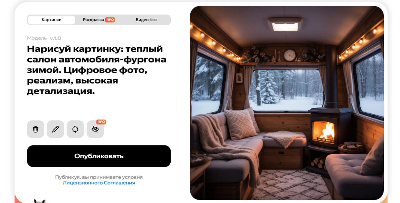 Автор: Akana againРабота по наполнению разновсяческих сайтов не дает скучать. Для интернет-магазина автозапчастей потребовалась статья про отопительное оборудование. Нейросетка ее соорудила меньше чем за минуту, но вот с иллюстрациями пришлось повозиться. Заказывать изображения самого агрегата я не рискнула, зная, что ИИ любит в самый неподходящий момент включать режим "я художник, я так вижу". Поэтому решила обойтись картинками общего плана. Например, вот так Шедеврум представляет себе теплый салон автомобиля-фургона. Прямо плюшевое что-то, только кружки какао не хватает!