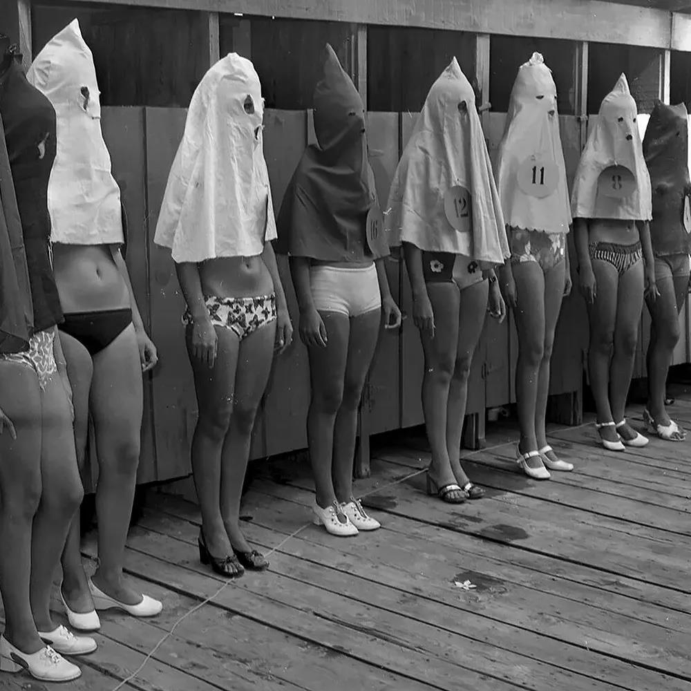 Чтобы сохранить инкогнито и уберечь себя от лишних взглядов и возможного осуждения, участницы выходили на подиум в лёгких накидках, скрывающих лица. В 1960–1970-х годах такая осторожность была вполне типичной для женщин из стран с более консервативными традициями и позволяла им участвовать в публичной жизни, не нарушая личных границ.