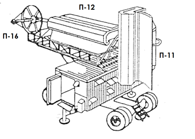 * Азимутальная антенна П-12 – расположена горизонтально на крыше кабины, предназначена для определения положения целей и ракет по азимуту (то есть в горизонтальной плоскости);