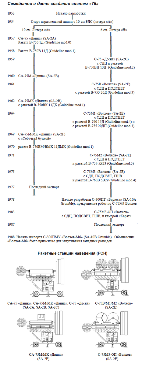 Фамильное древо ЗРК 75-ой модели. Правда, солидное? Нас интересует его левая ветвь — комплексы СА-75.