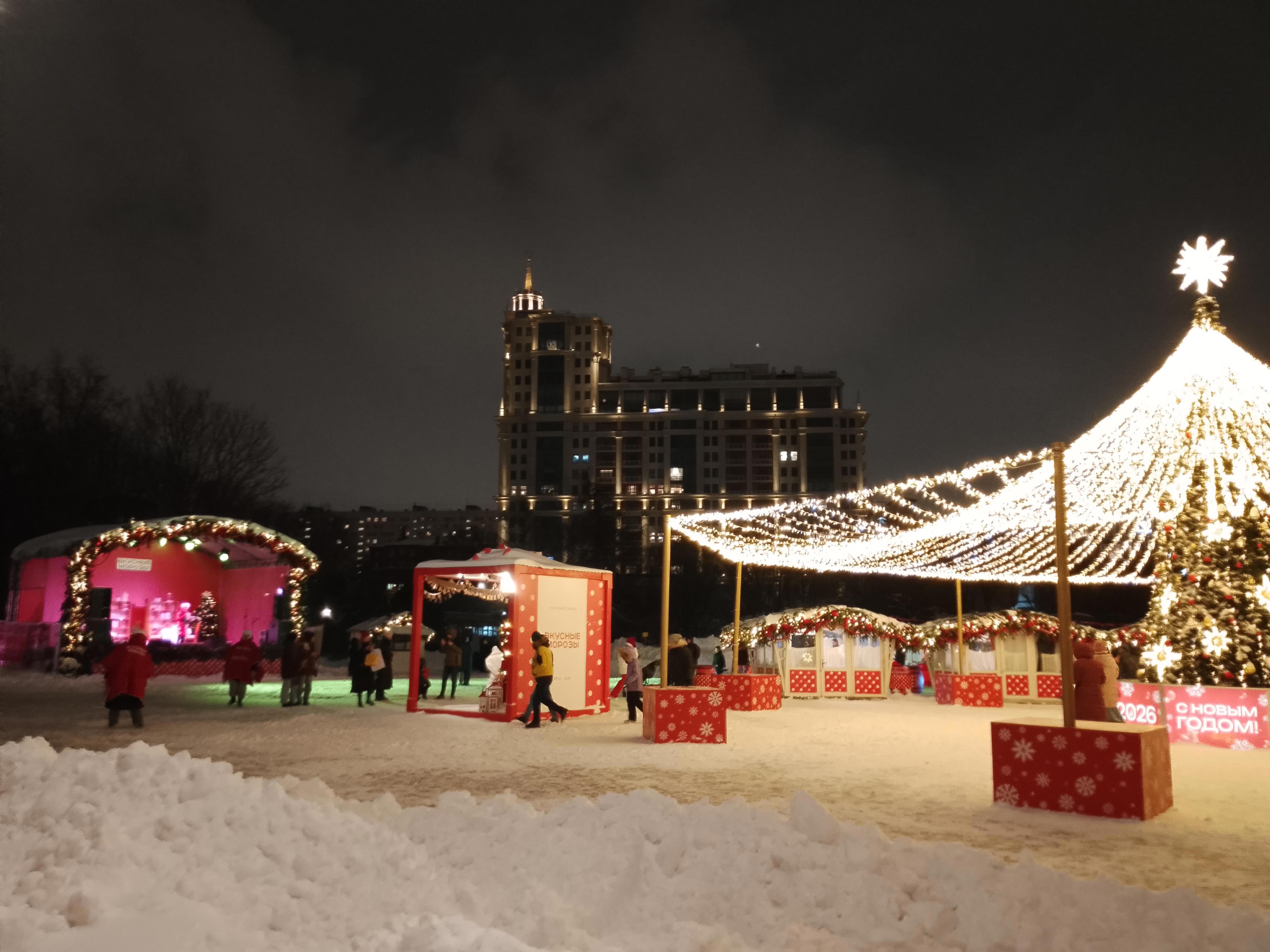 Ну, а тем ворменем около парка Музеон проходил Гастрофестиваль в рамках традиционного москрвского "Путешествия в Рождество". Со сцены в исполнении ведущего звучали вопросы викторины- к примеру, всегда ли на Руси осетровая икра была дорогой, и прочие.
