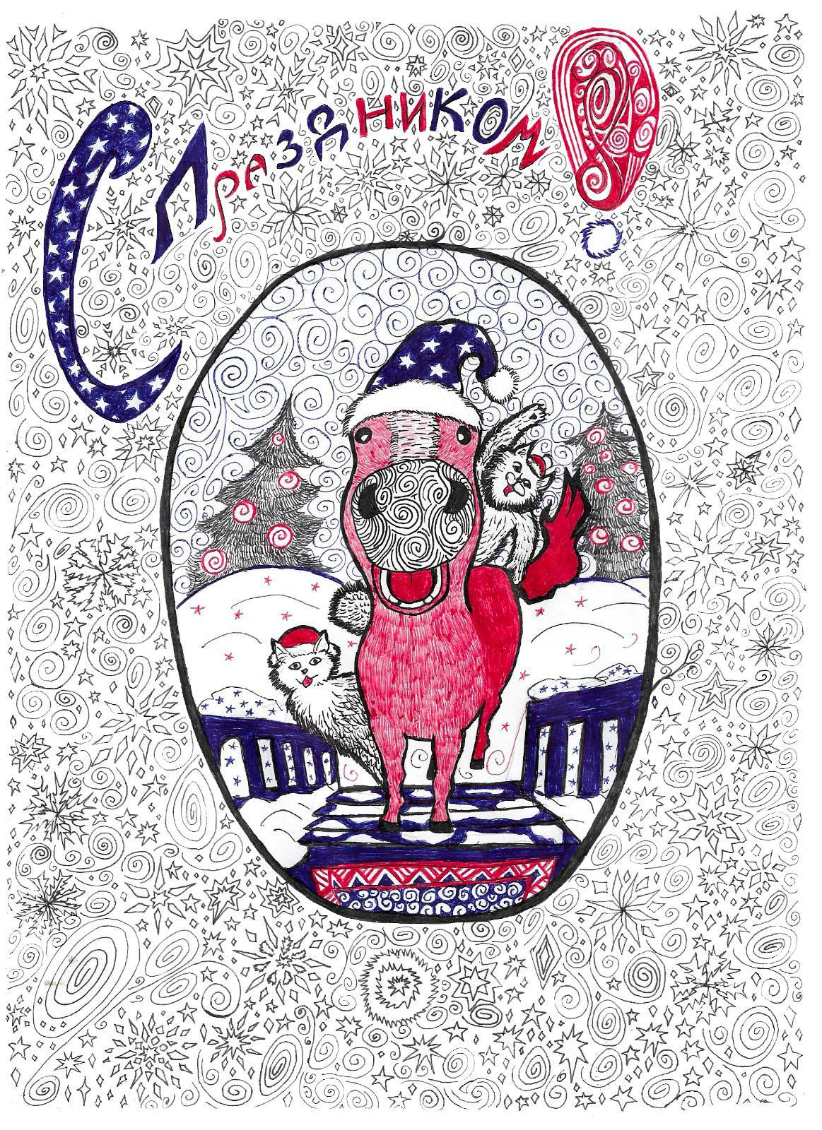 Потап глянул в глазок специальный, вделанный в створку, железом обитую да завитками украшенную, и захихикал. Прохор явился в образе странноватой мохнатой лошади, явно хлебнувшей чего-та по дороге, в синем звездчатом, якобы новогоднем, колпаке и с глуповато-радостным выражением на морде. На спине и у ног расположились домовики в образах более уместных: в основном котовьих.