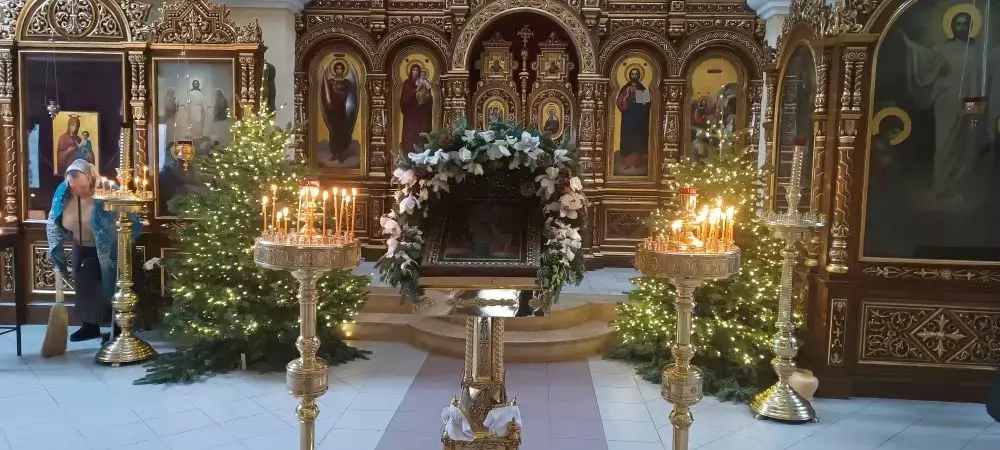 А сегодня пошла в церковь, ну была такая необходимость. А там все украшено еловыми ветками. И вход, внутри, еще и Елочки стоят, красиво светятся веселыми огоньками.