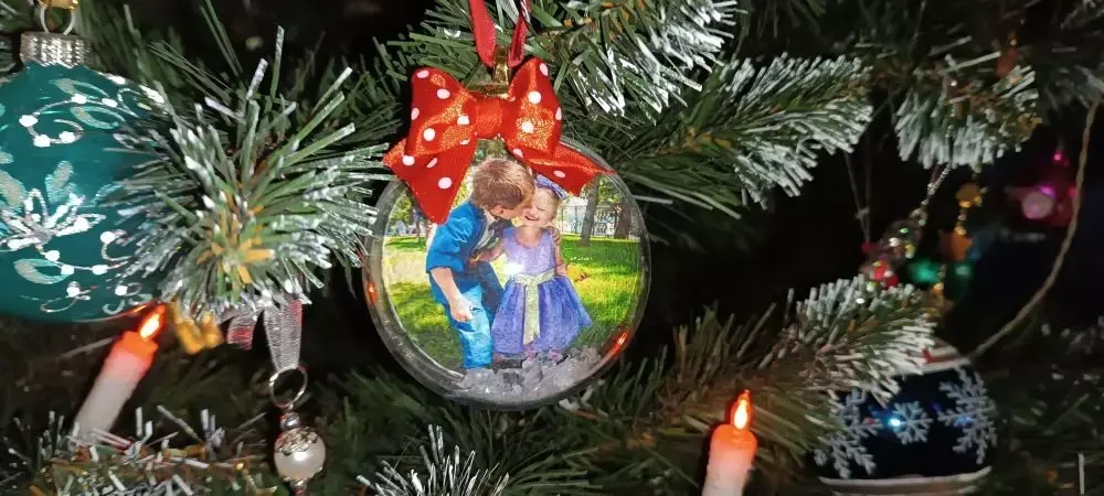 И есть у меня любимая игрушка. Мне ее подарили дочери - 8 лет назад. И я с особой любовью ее вешаю на елочку и она у меня занимает центральное место. Там внутри - мой старший внук и внучка. Такие милашки! Им было 5 и 2. Сейчас они в такой шарик уже не поместятся - выросли.