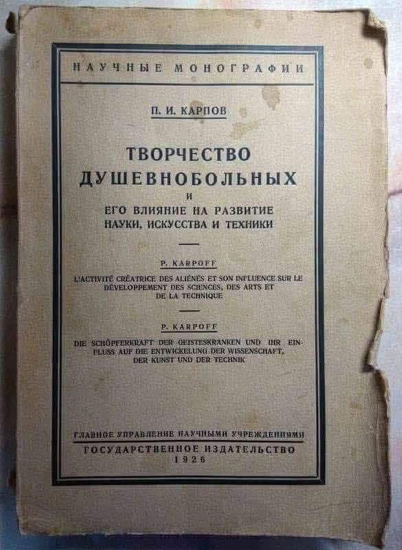 А когда Саша смотрит на обложку, то обнаруживает, что книга преобразилась в научный труд П.И.Карпова «Творчество душевнобольных» 1926 года издания.