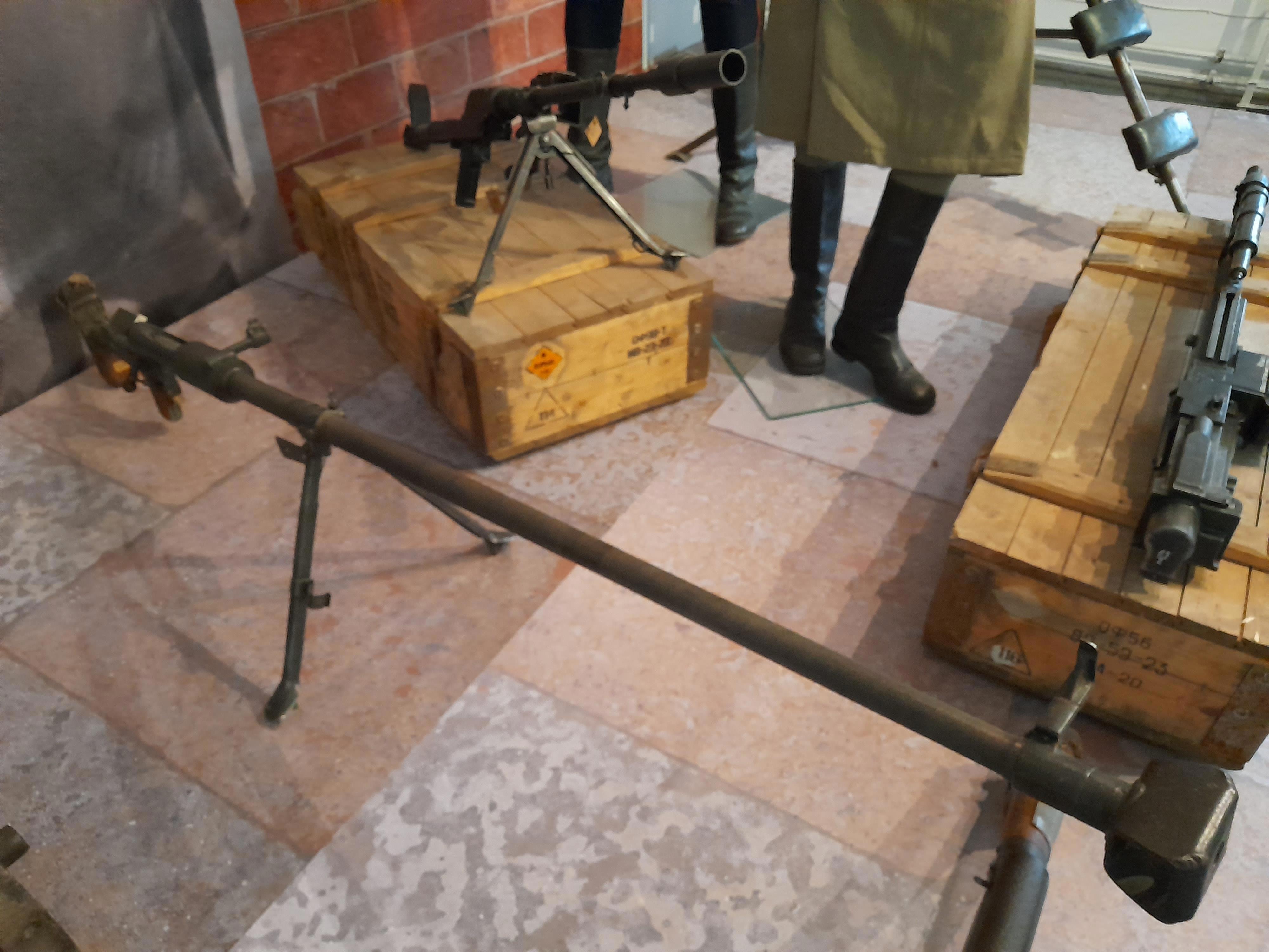 Также наглядно видна разница между немецким Панцербюхзе 39, который обосрался уже в 1941 году и потому немцы, чтоб не выбрасывать эту бесполезную ерунду переделали оставшиеся образцы в гранатомет - тоже унылого свойства - он на ящике стоит и наше обычное ПТРД.
