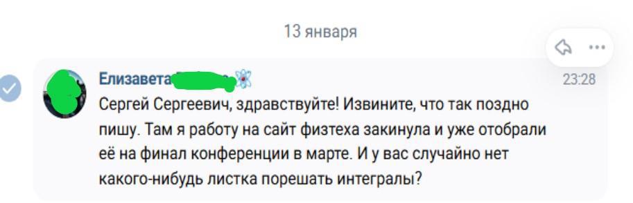 Я конечно скинул ей. Но в очередной раз задумался: почему сегодня девочки пишут классные научные работы по физике и математике, готовятся к олимпиадам и занимают места, просят интегралы в полночь? От парней я уже давно ничего подобного не получал. Это феминизм? Или пофигизм? Или эскапизм?)