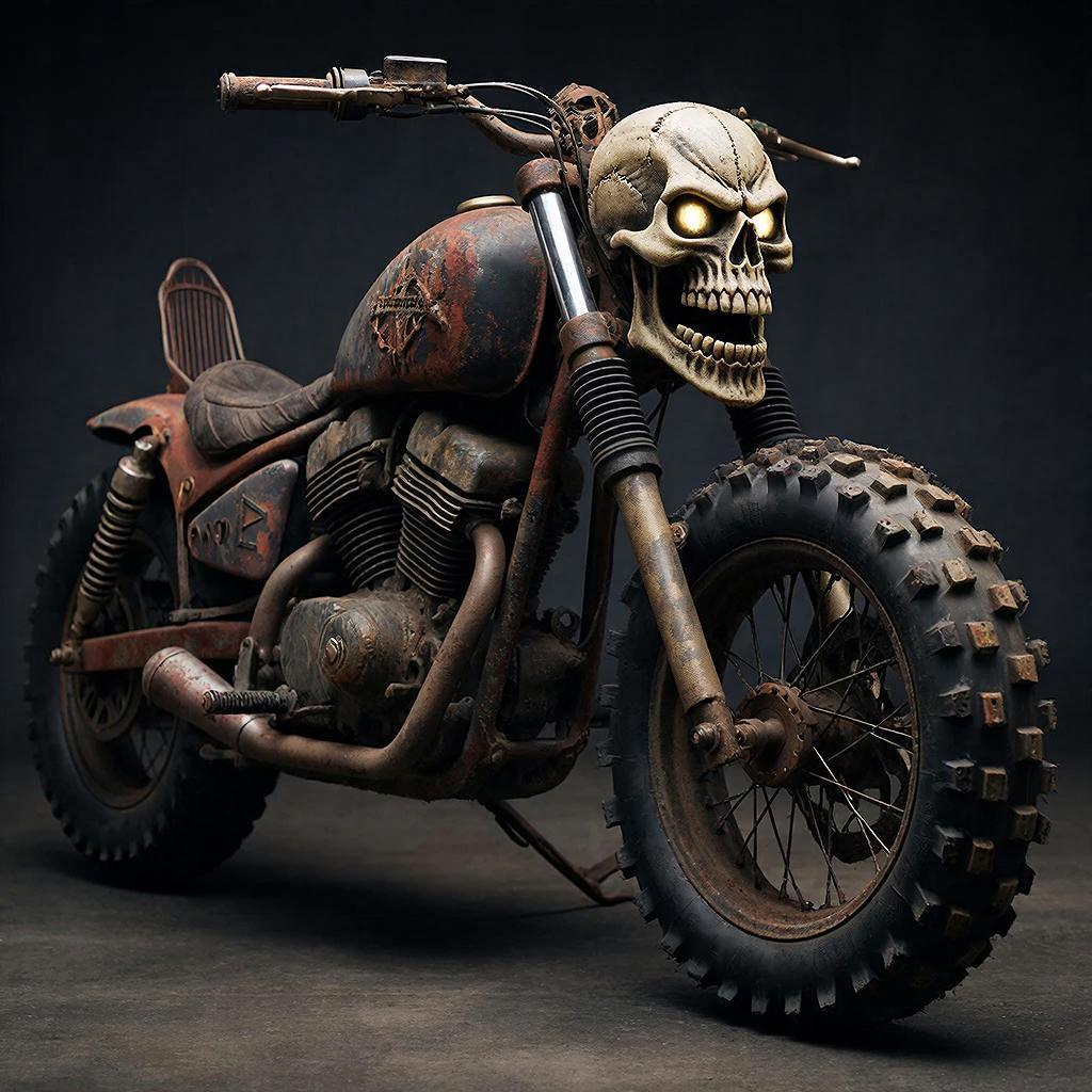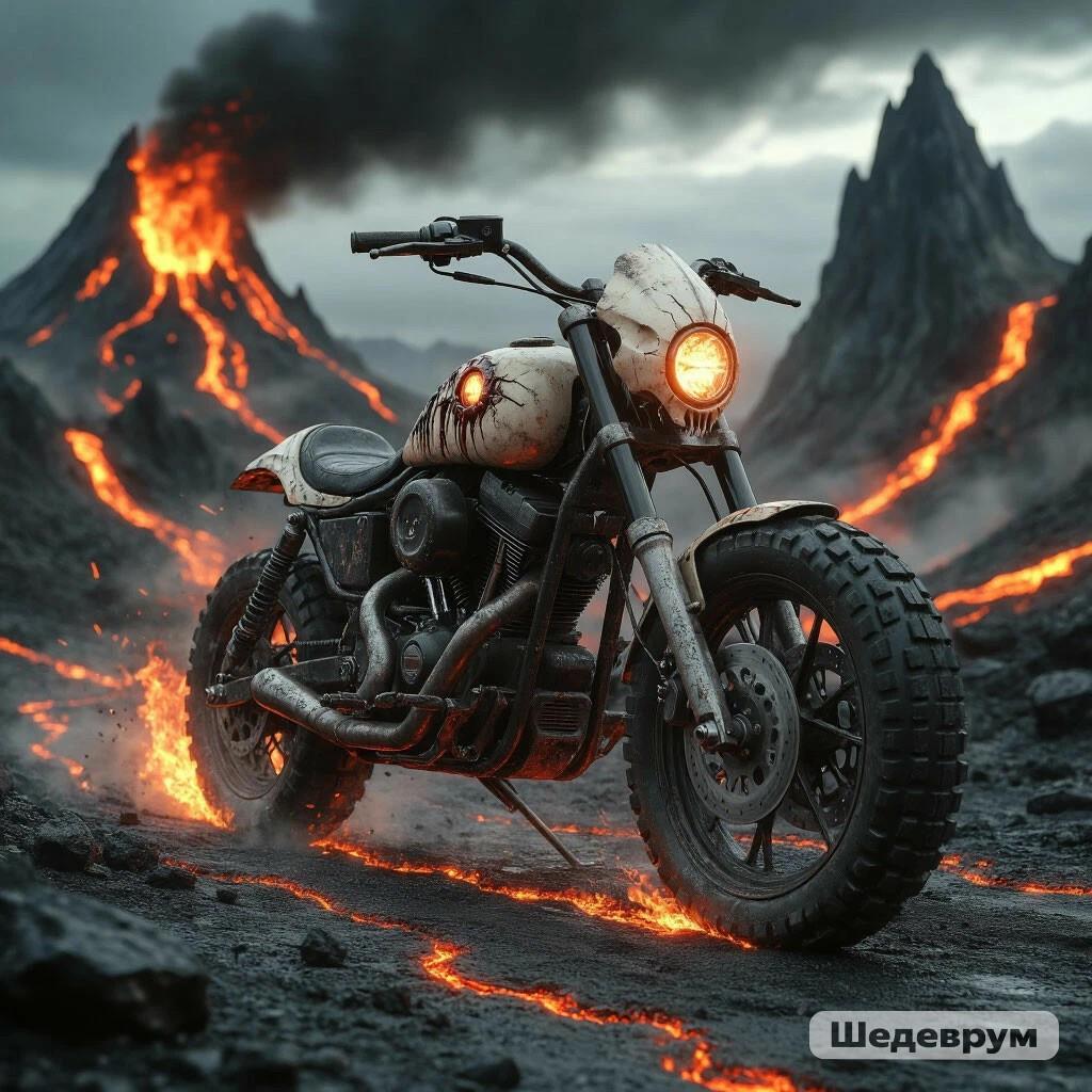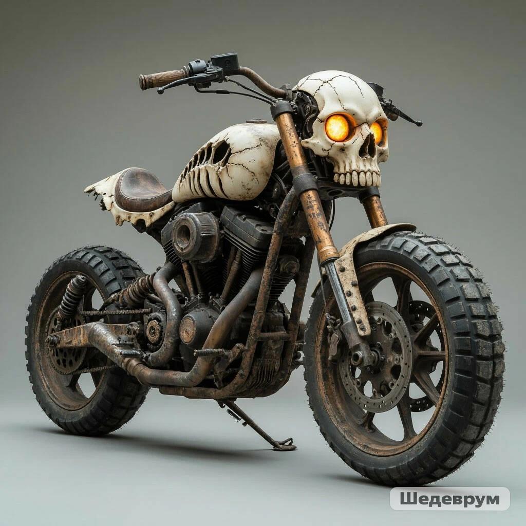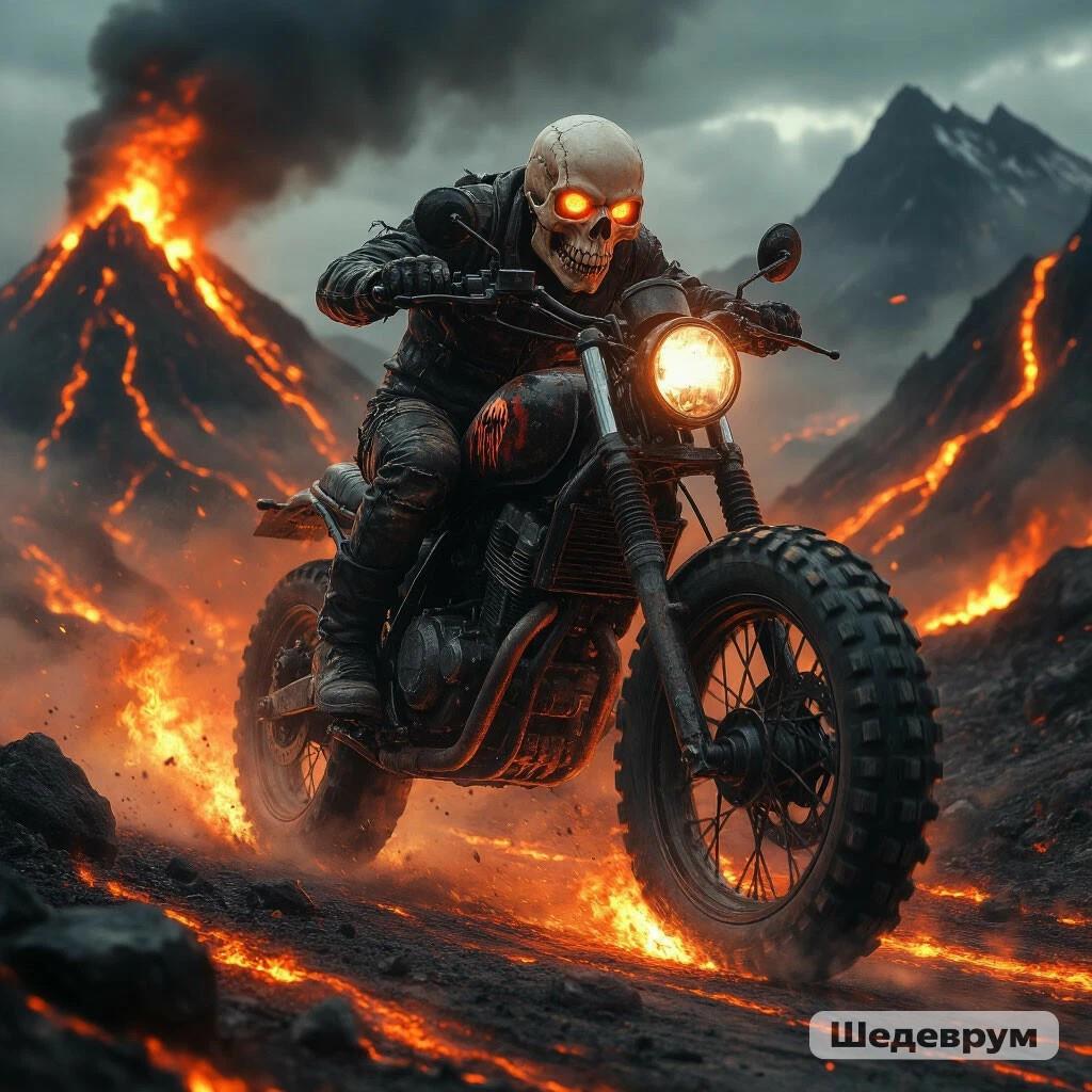 А здесь, шедеврум словил глюк и нарисовал скелет за рулём, хотя мотик тоже неплох