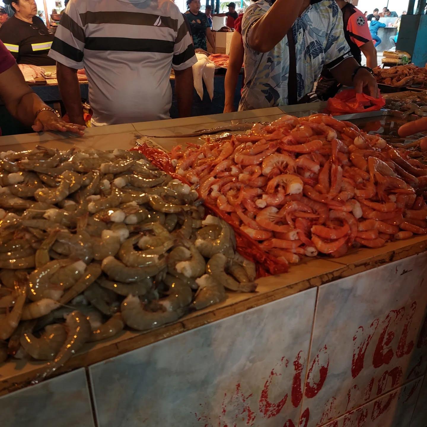 Креветки, кстати, продаются без голов. Те, которые красные, - из океана, те, что сероватые, - с фермы.