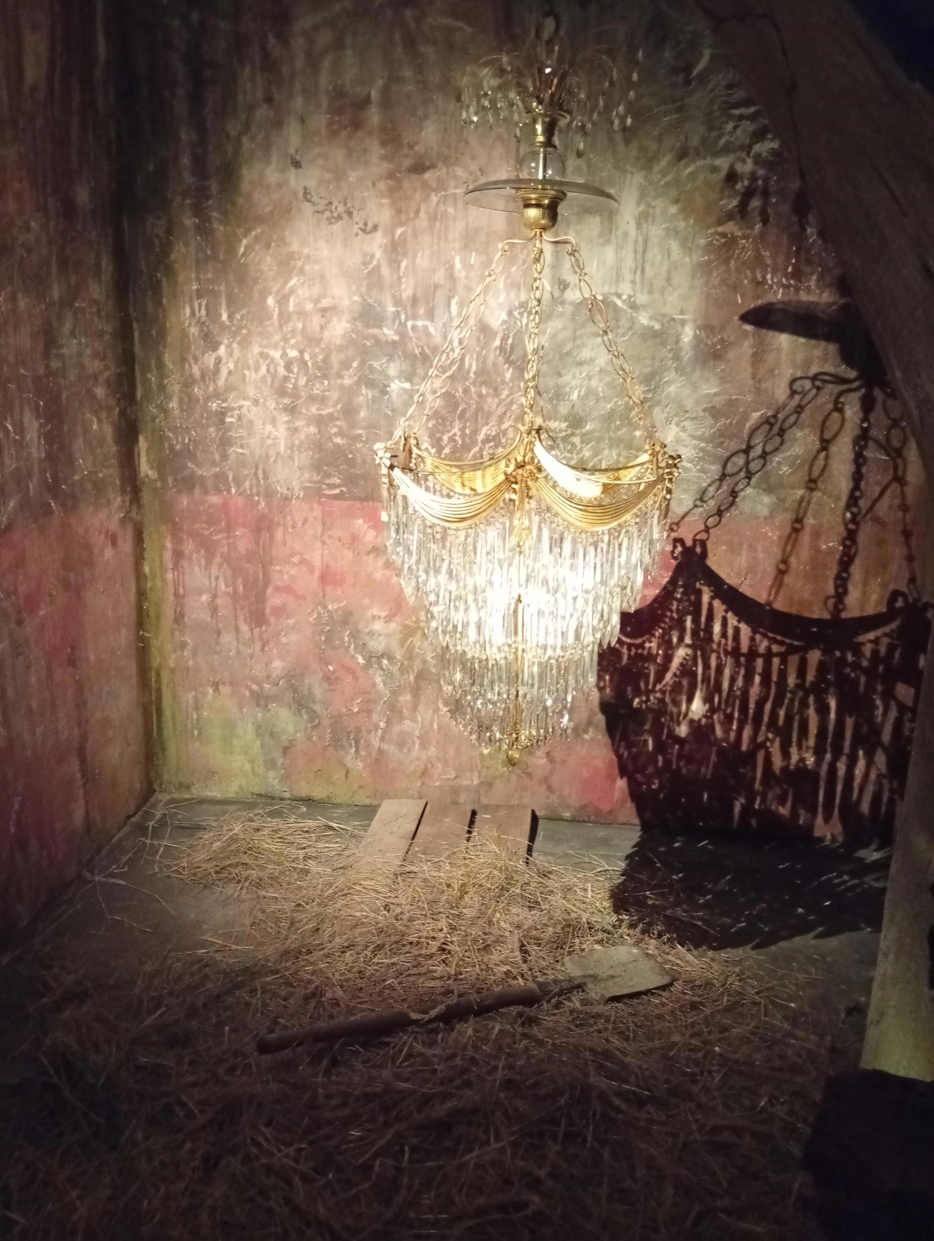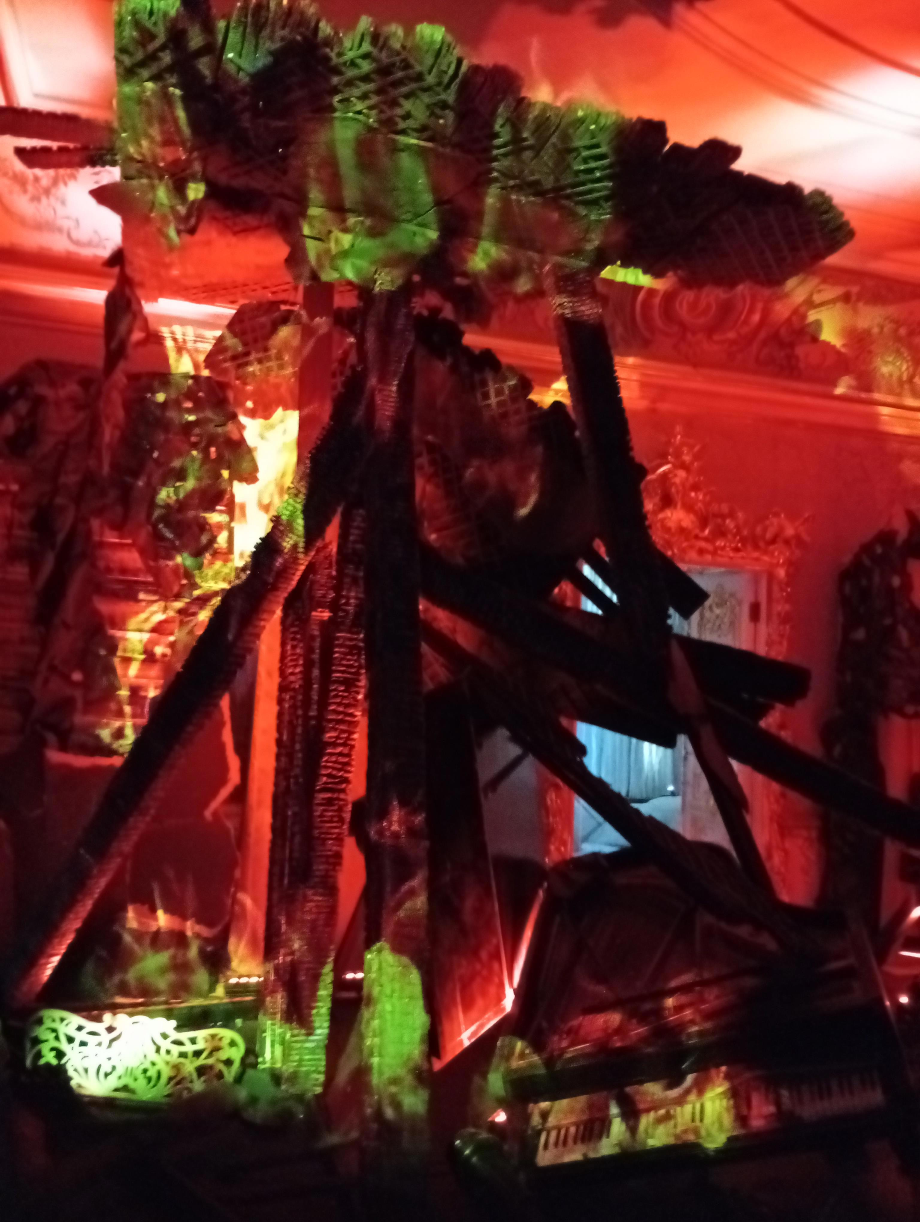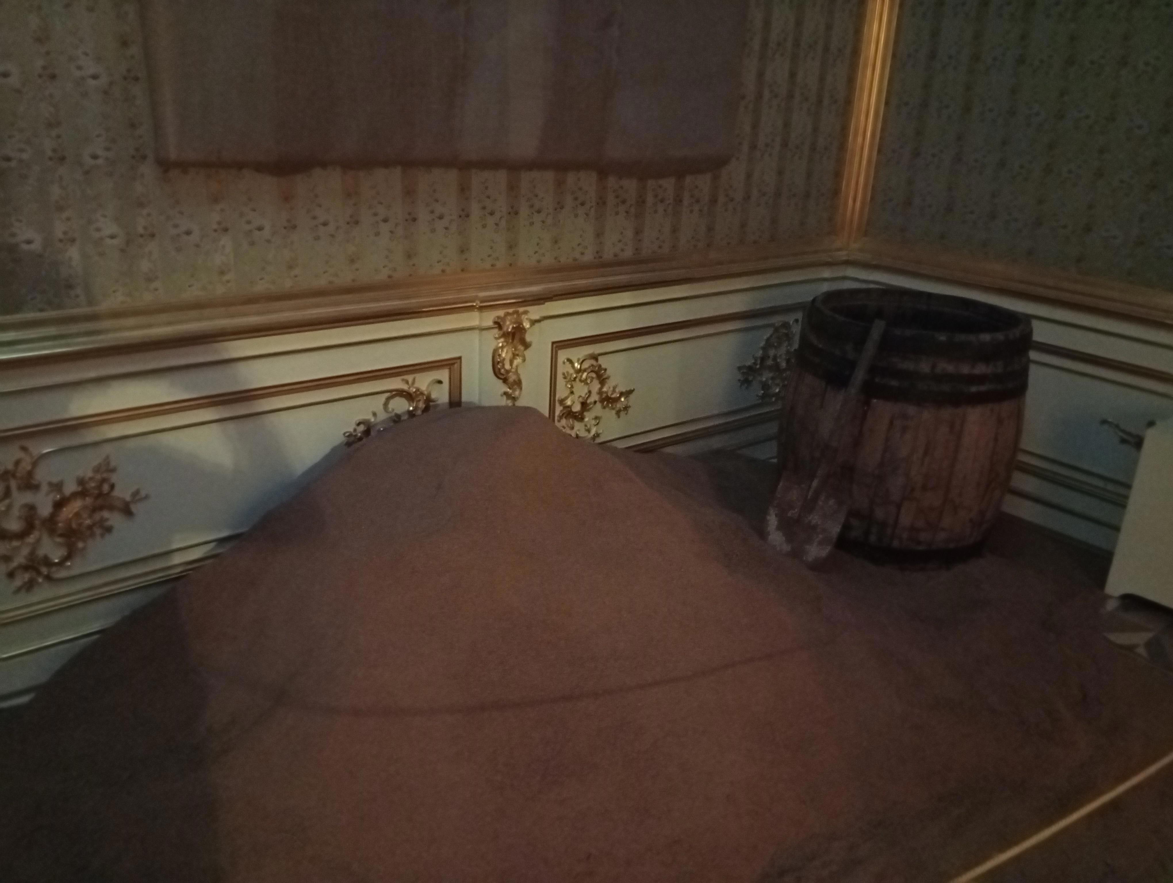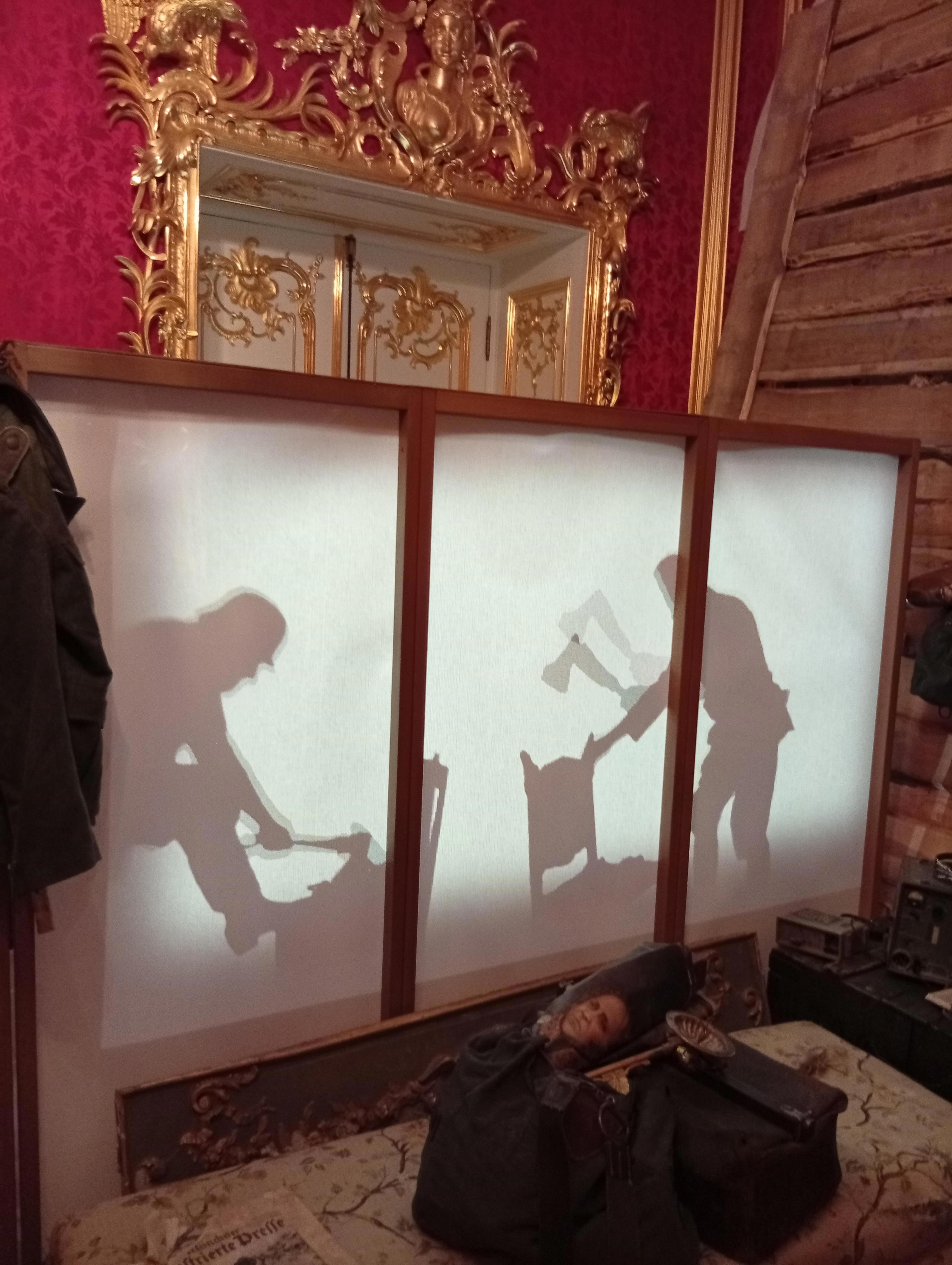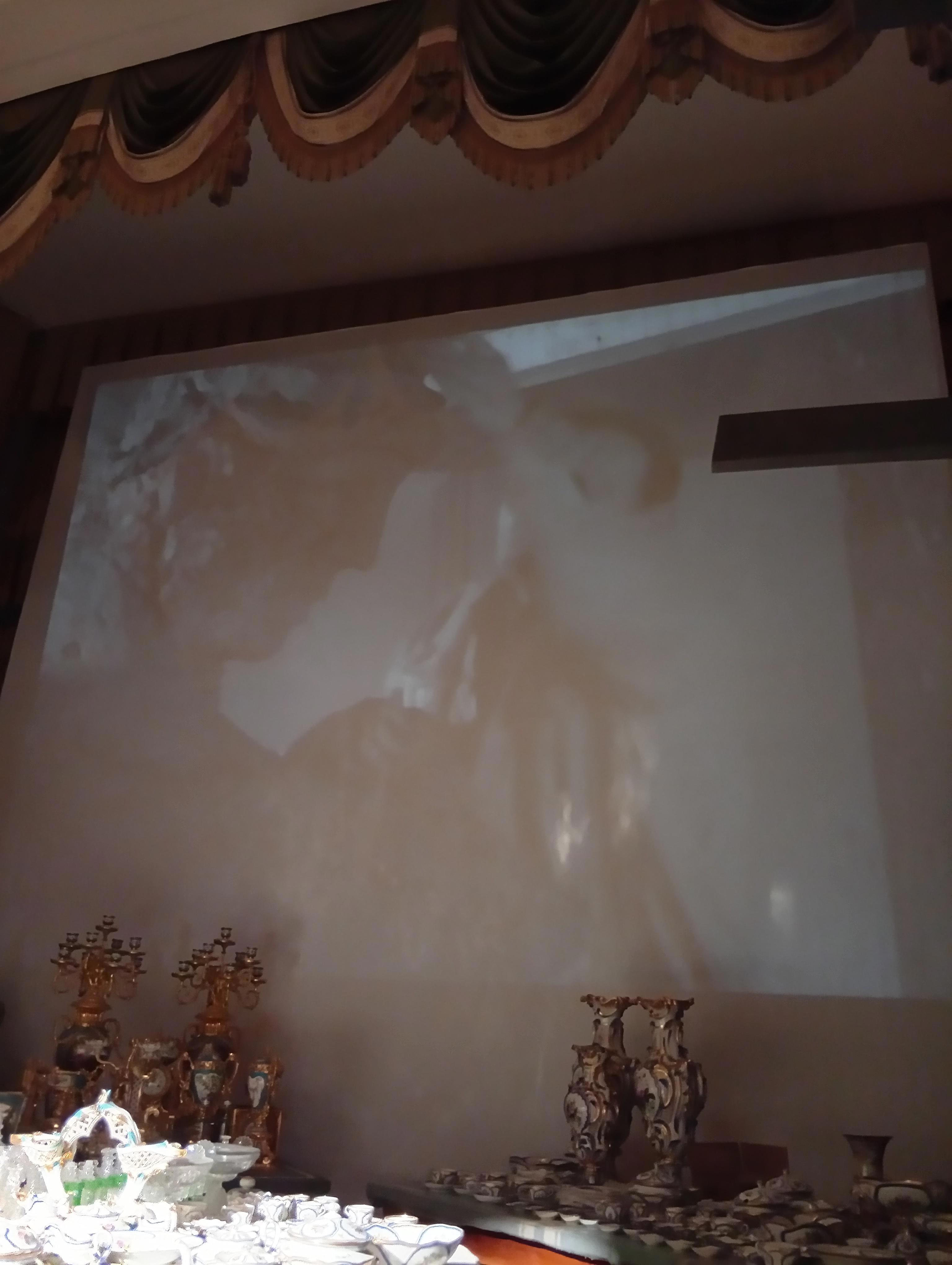 За ширмой дербанят дворец. Один из известных эпизодов — напившись, дорогие гости палили по потолку, сбивая лепнину, пытался его заловить чтобы сфотографировать, но оказалось слишком долго, забил.