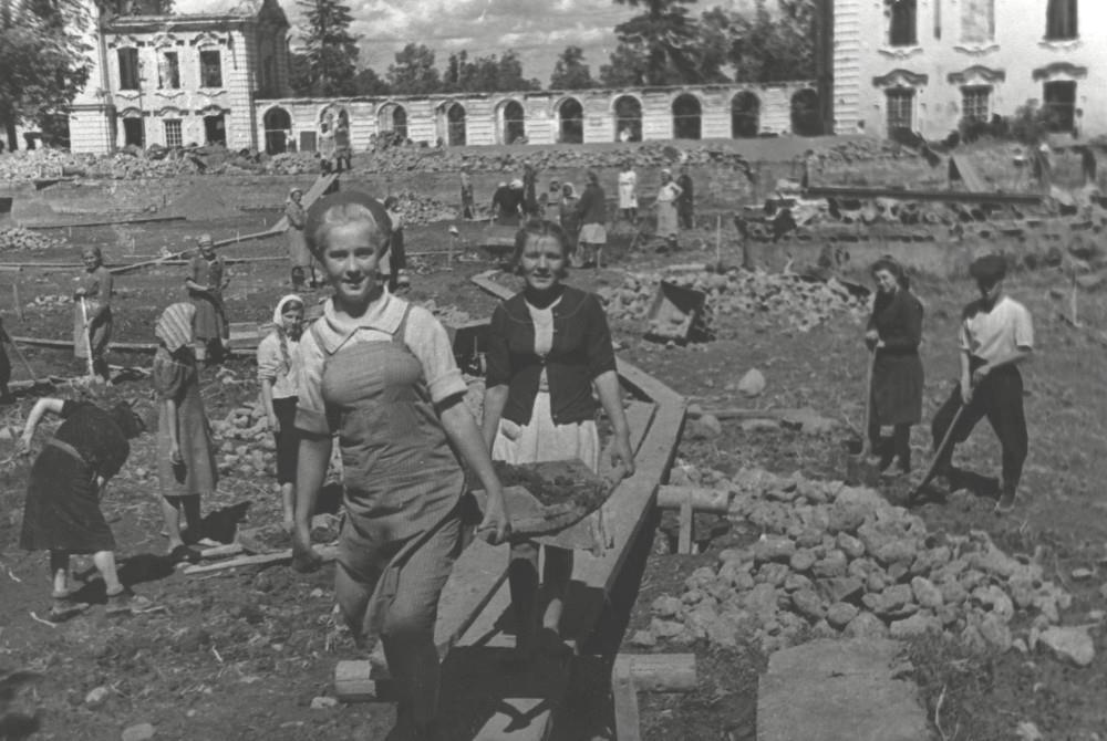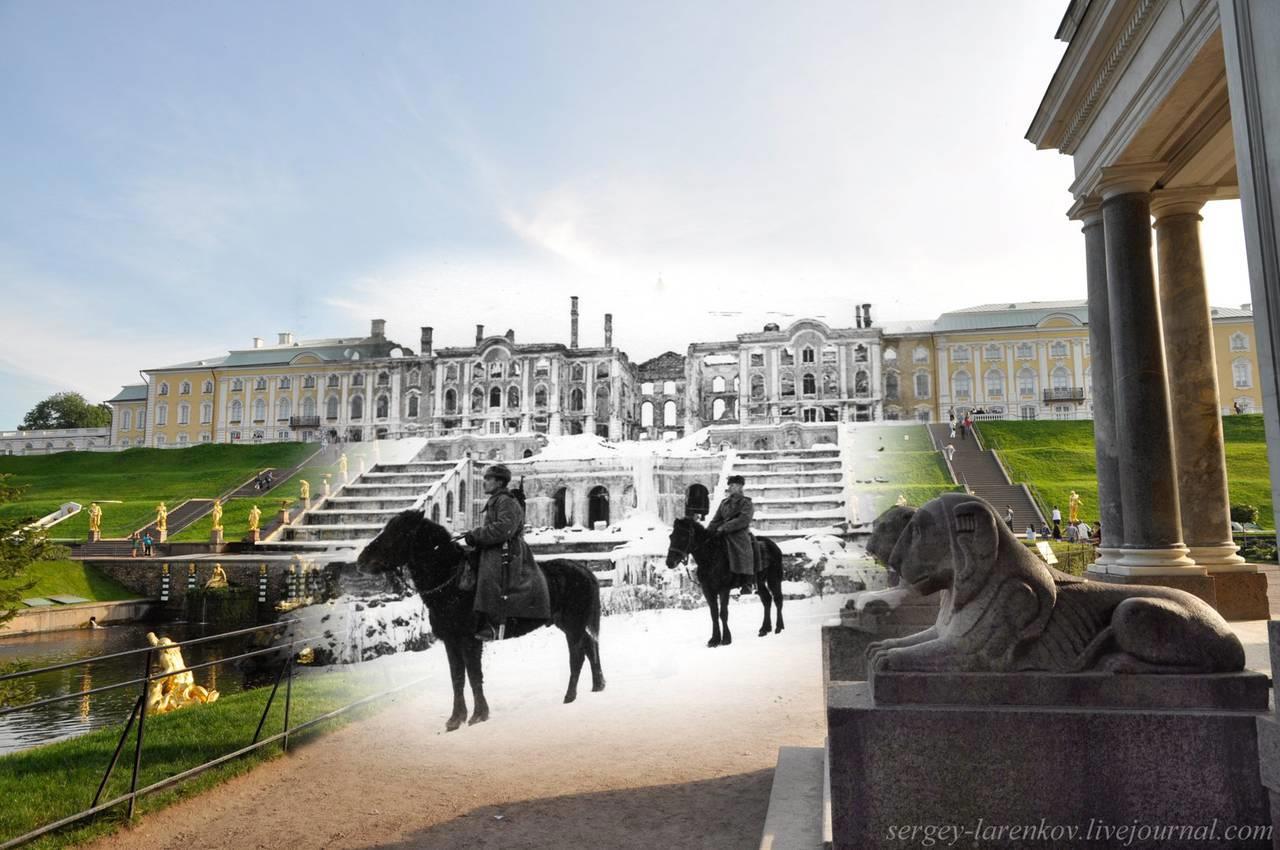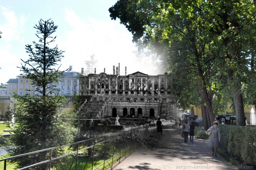 Речь, конечно же, про разрушение и разграбление дворцов, а также про их последующее восстановление.
