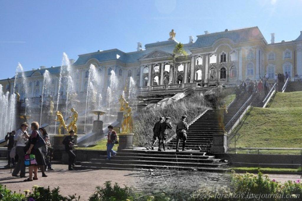 Почти сразу после освобождения вновь открыли парк и даже смогли вновь запустить фонтаны.