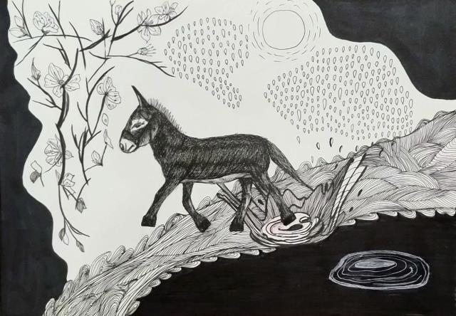 Не знаю, погоняемый моим страхом или своим Платеро бежит, влетает в ручей, наступает на луну, и та разбивается на осколки. Рой хрустальных роз словно желает сдержать его бег.