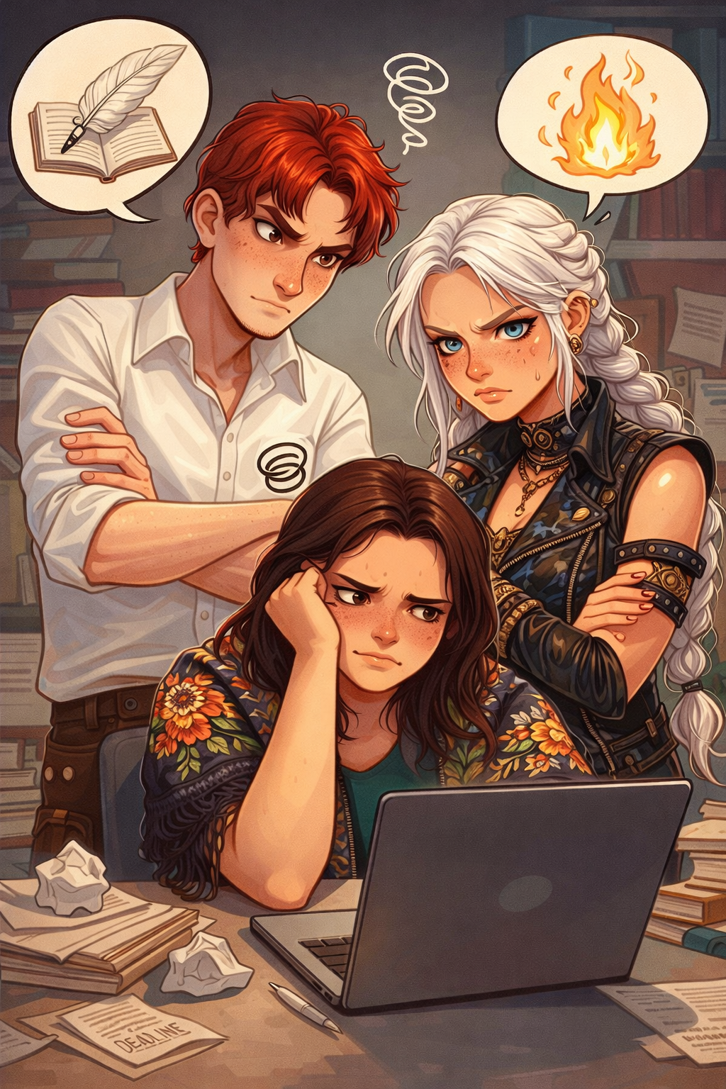 - Или иллюстрация того, как персонажи ждут, когда автор наконец закончит играть в социалочку и участвовать во всяких конкурсах и вернется к придумыванию хитрой схемы, как вызволить матушку Игни из лап Старого Лиса.