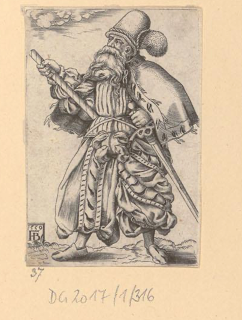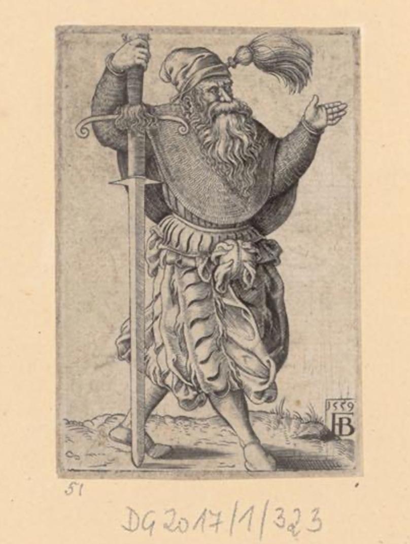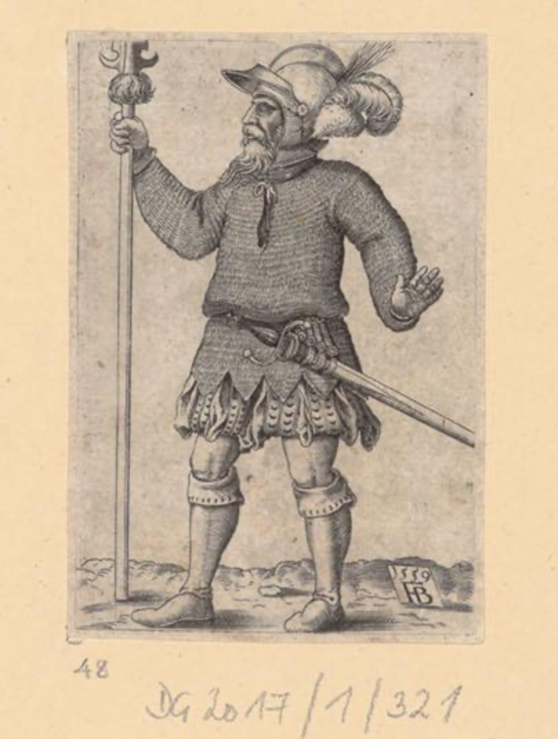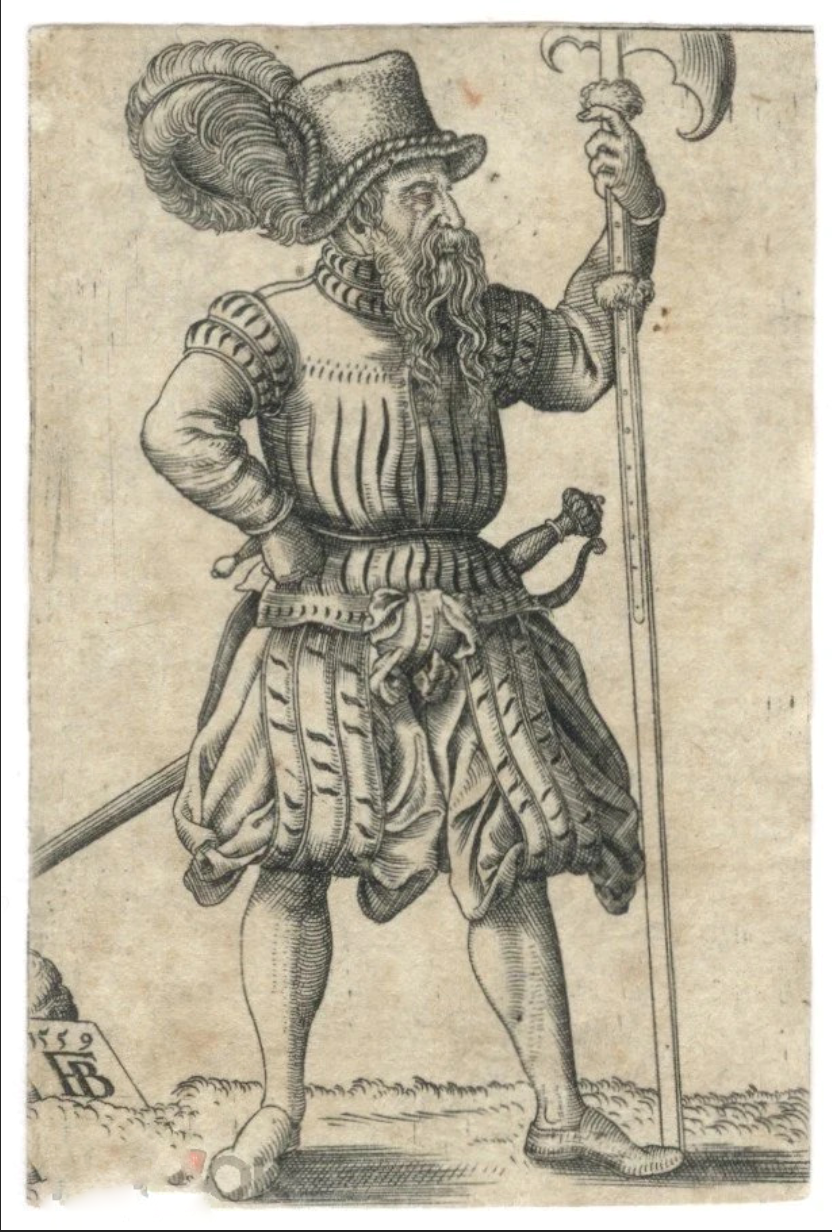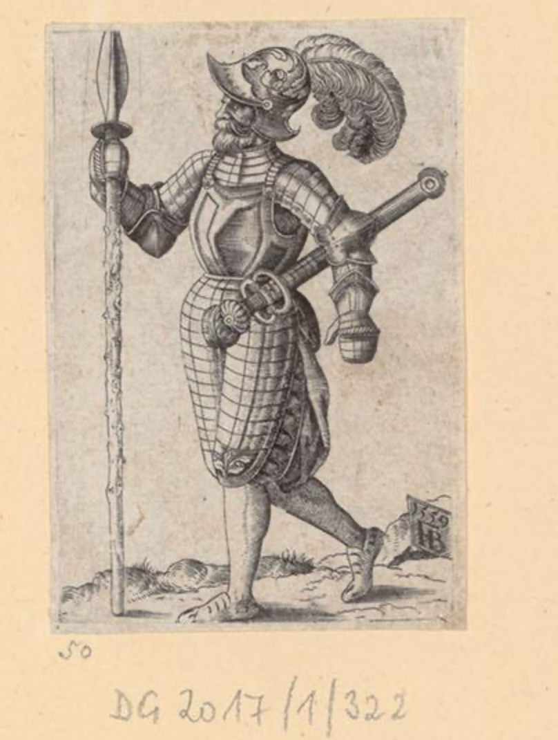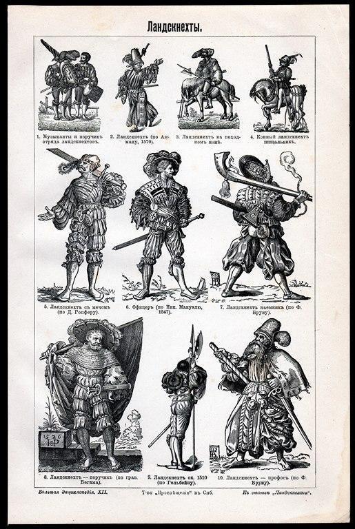 А это лист 1908 года издания с различными изображениями ландкнехтов - причем здесь как авторы, державшие в руках меч и алебарду- Никлас Дойч