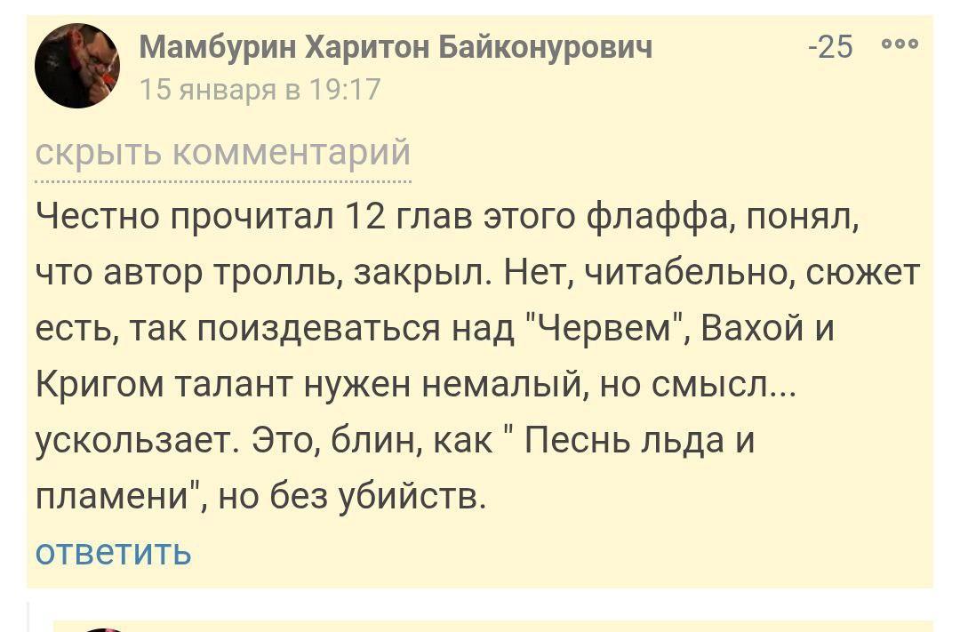 Я на этот фанфик ссылку получил, так что почитаю и в следующем посте прокомментирую. Сракастично, само собой. Эта битва за звание деда Сраки станет легендарной, а трон сраказма не потерпит узурпации. Schließlich jedem das Seine.