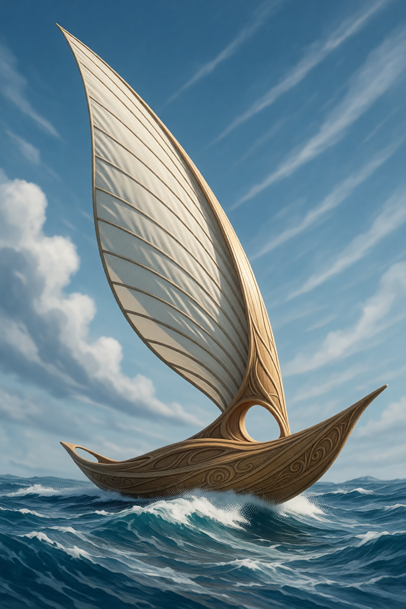 2) Продолжая водную тему, теперь про корабли эльфов. Делать им что-то стандартное человеческое как-то не хочется, тем более что их связь с природой можно продолжить и на судостроение, возможно даже на судовыращивание и даже судодрессировка. Этакий биотех с кучей плюсов и с не меньшим количеством жирных минусов. Если в книге «Плоть эльфа» австралийские эльфы дойдут до воссоздания своего флота, то примерно их суда будут выглядеть так.