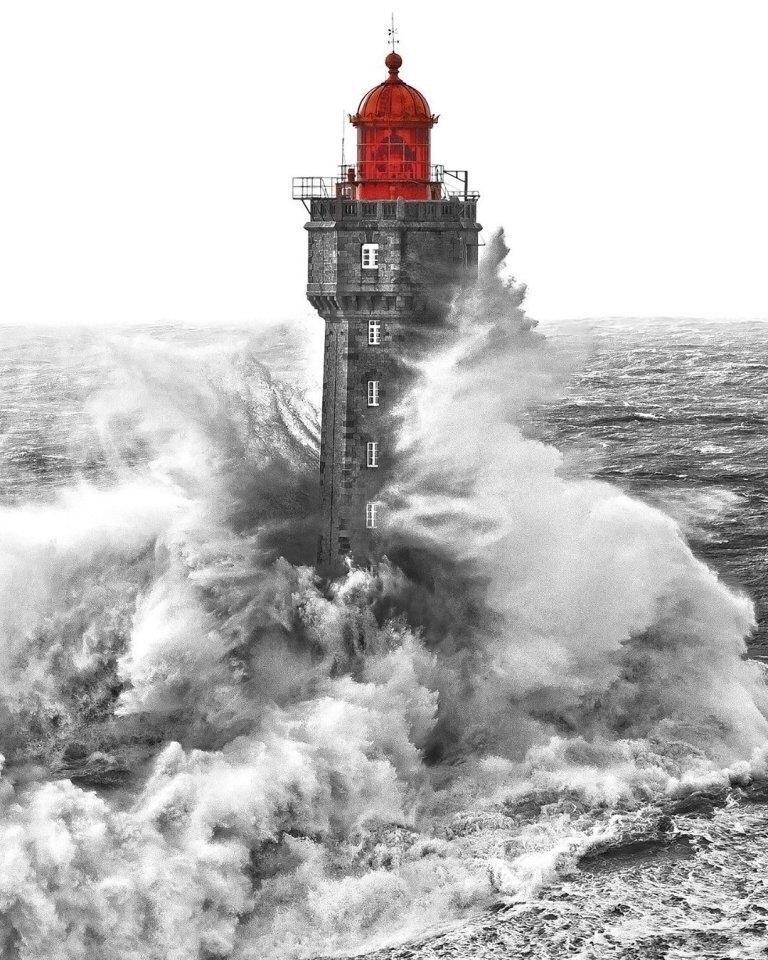 На известной фотографии 1989 года, сделанной Жаном Гишаром, смотритель маяка Теодор Мальгорн выглядывает из дверей башни, когда огромная волна вот-вот накроет здание. Пережить такую стихию под силу далеко не каждому, даже если предлагают высокую зарплату.