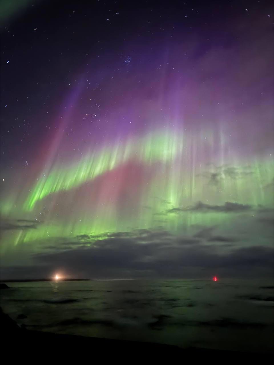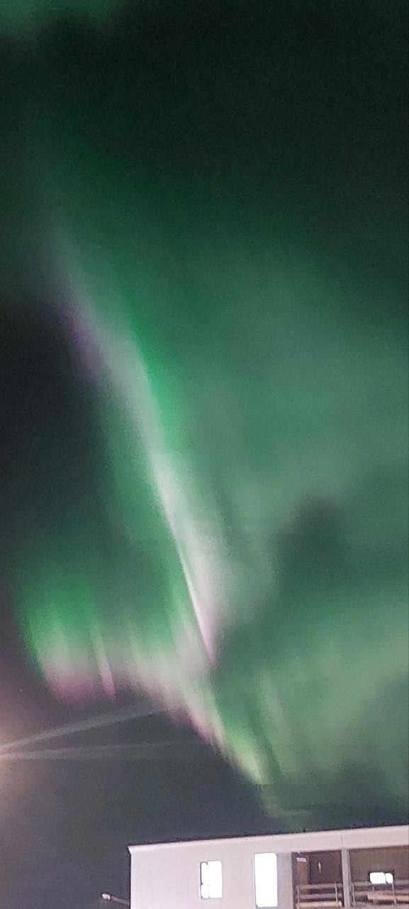 Фото сделаны с балкона квартиры. Сами оттуда любовались северным сиянием. И одно фото над океаном.