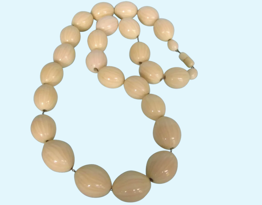 Впервые целлулоид (вид пластмассы) появился еще в конце 19 века, как материал для замены слоновой кости в бильярдных шарах (запатентовал Джон Уэсли Хайат). Затем народ смекнул, что заменять слоновую кость можно не только в шарах, но и в украшениях (и целом ряде товаров, от часов до футляров для очков). И не только кость, но и янтарь, черепаховый панцирь, нефрит и т.п.