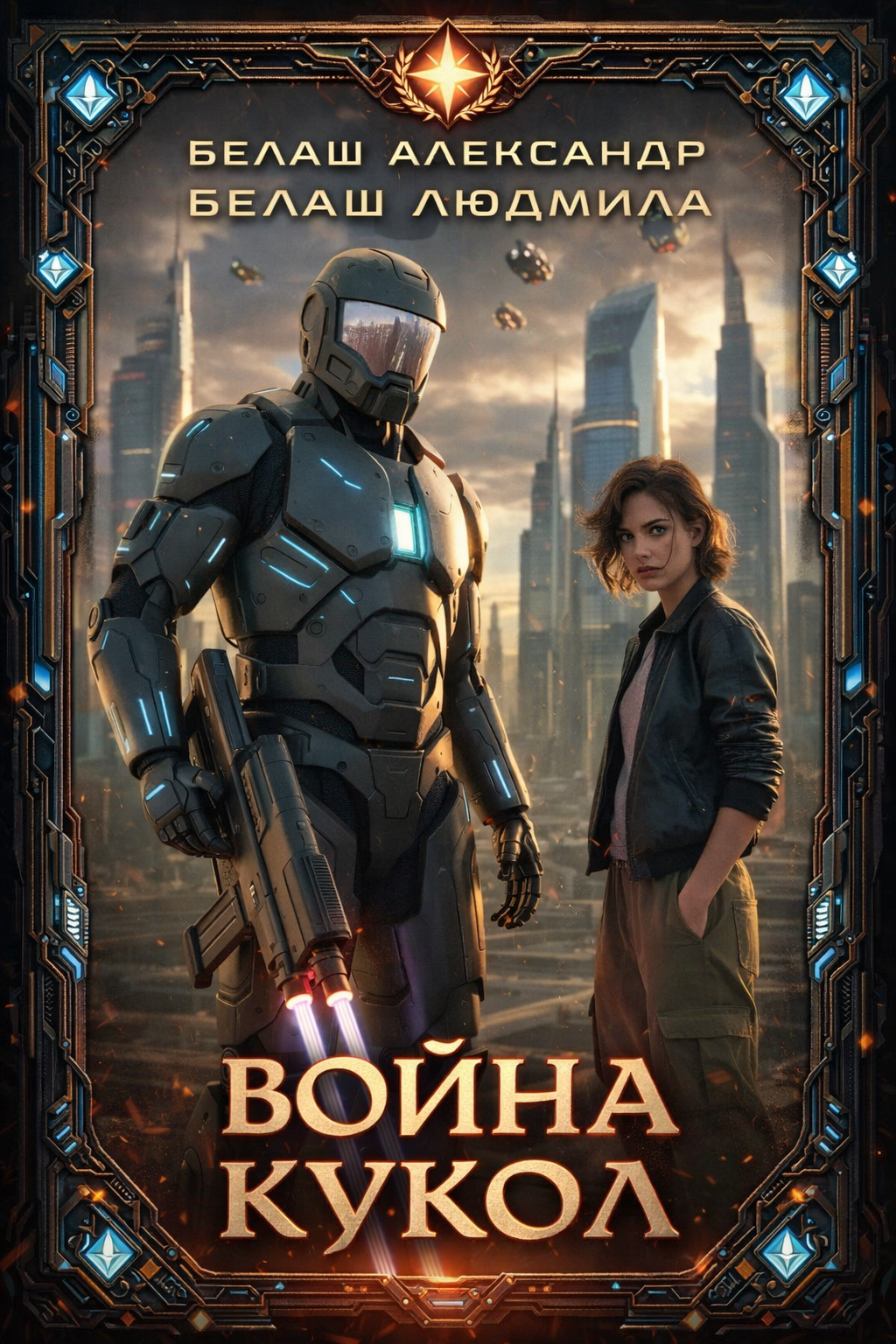 Автор: Белаш Александр и Белаш ЛюдмилаБлагодаря дружеской помощи Макса Далина из сгенерированных неживым интеллектом артов получились очень достойные обложки для публикации "Войны кукол" (первый том). Какая обложка лучше?