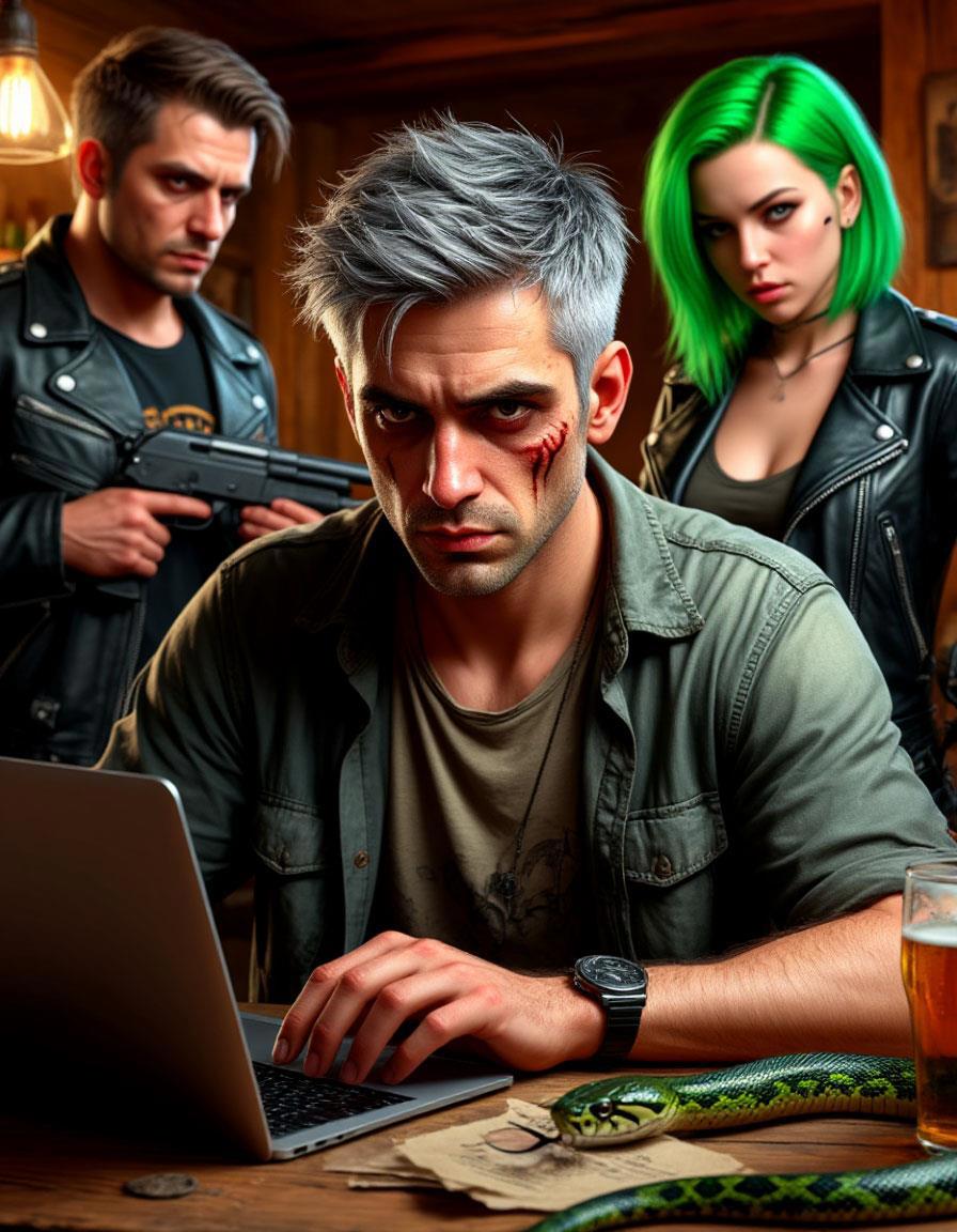 Автор: Николай Владимирович БеляевВ рамках флешмоба все же помучил нейросетки на тему "автор и его персонажи". В итоге получил не скажу чтобы годное, но любопытное (ссадину на скуле нейронка придумала сама):