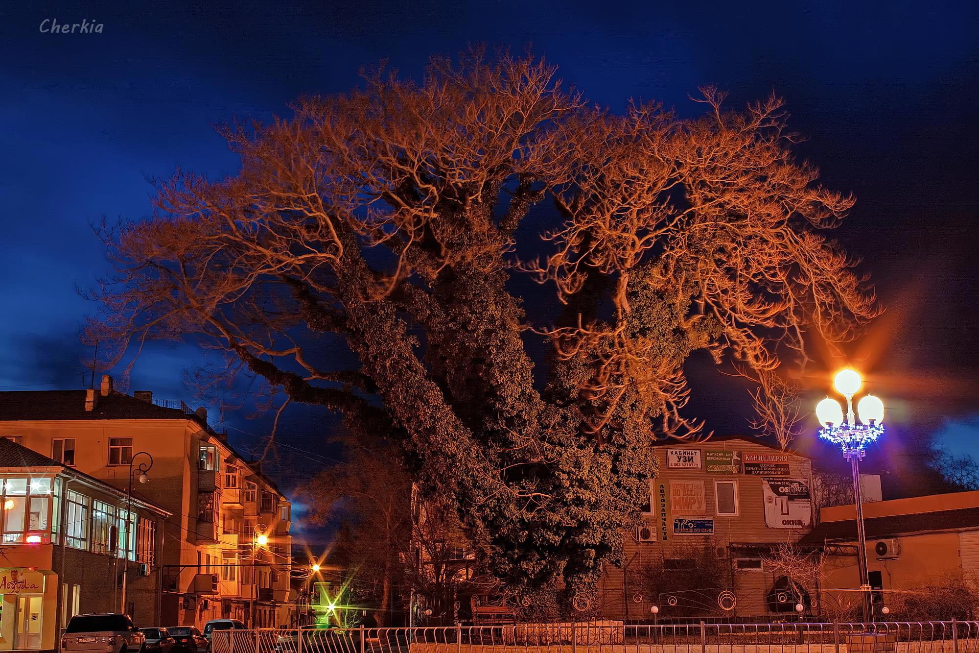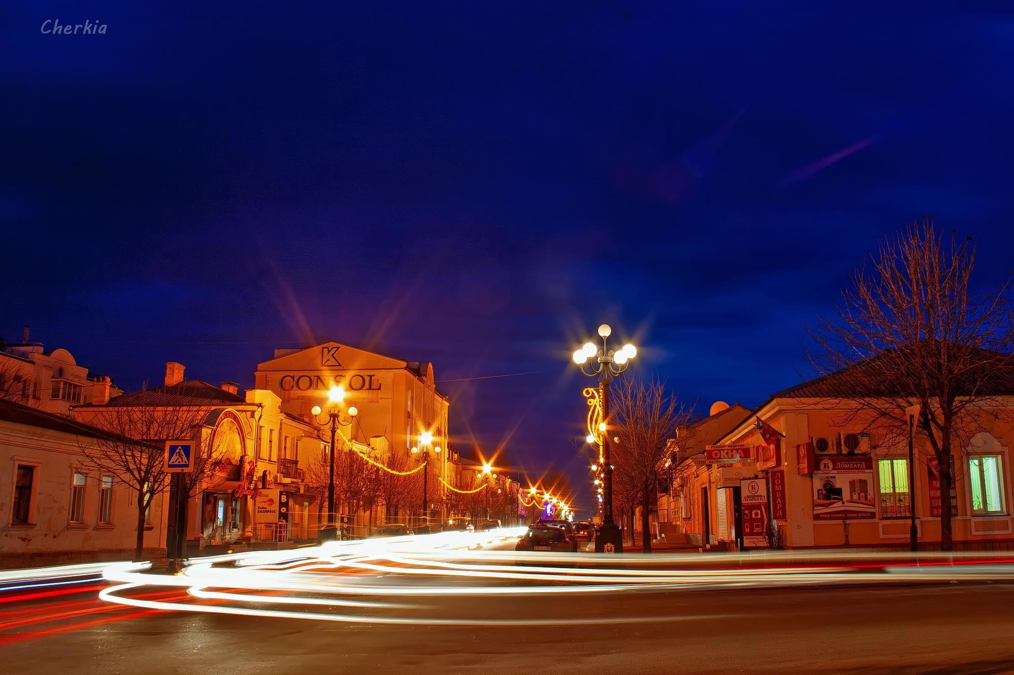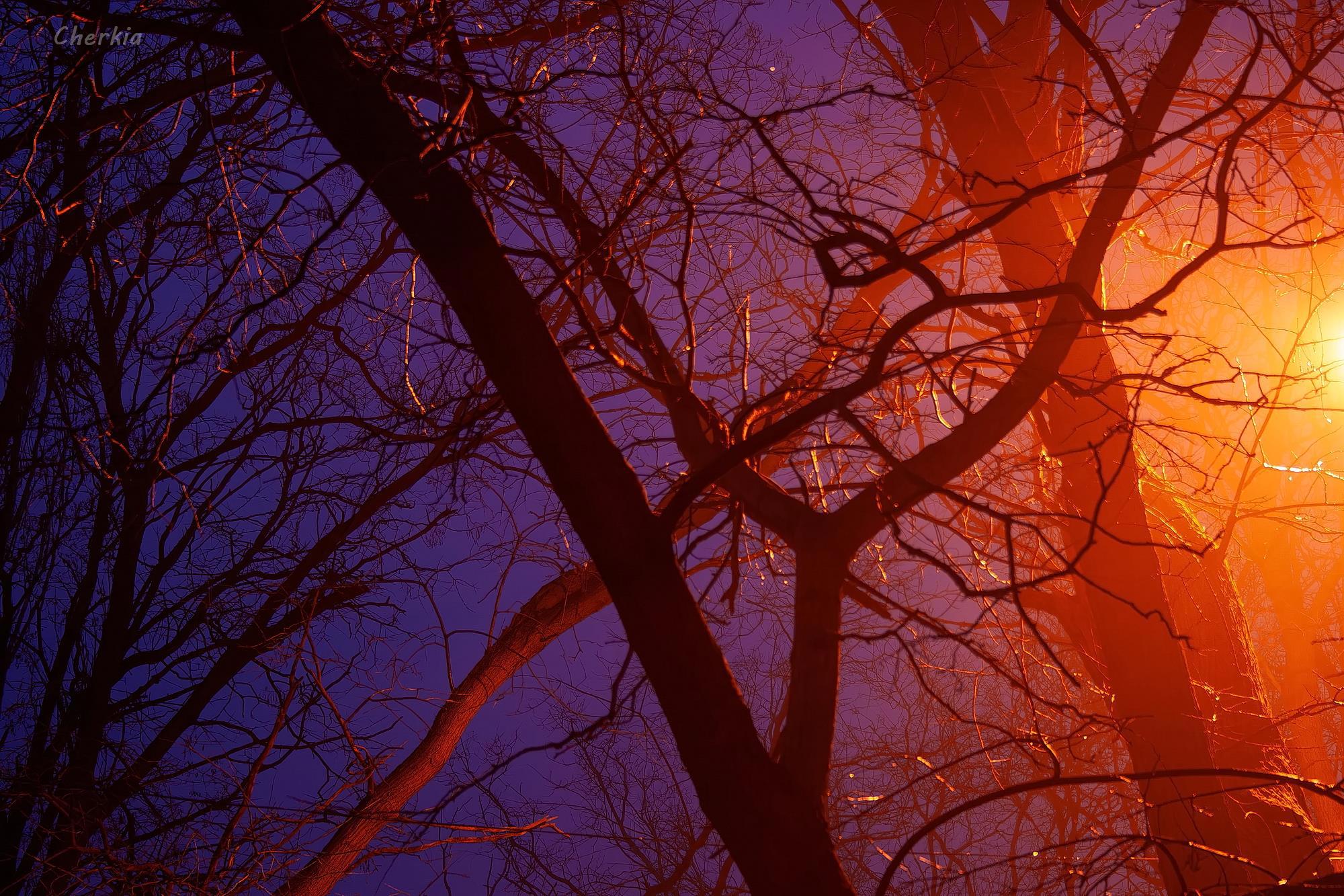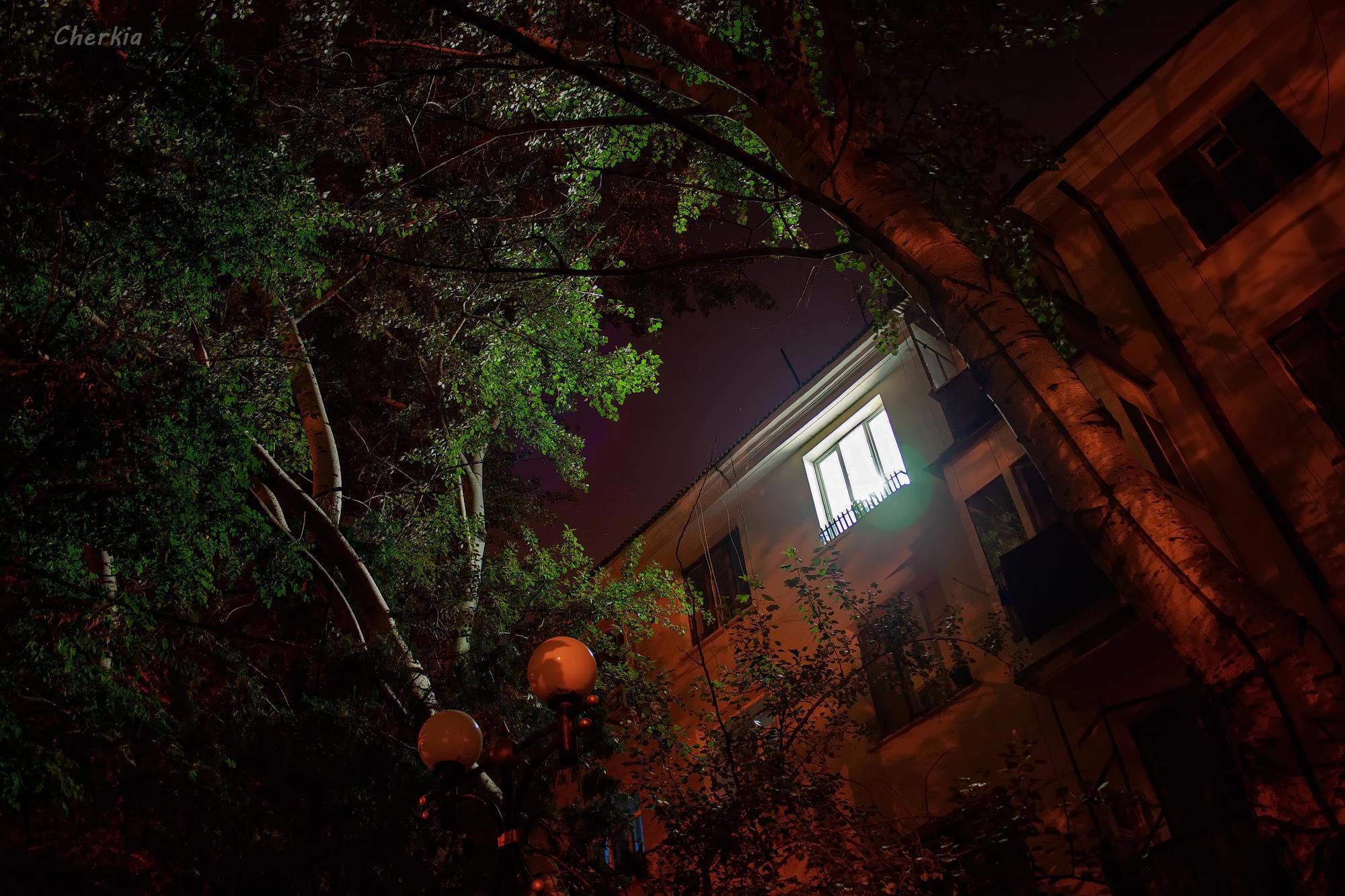 Когда фонари белые, а небо уже ночное, снимок имеет совсем другие оттенки, ближе к сепии.