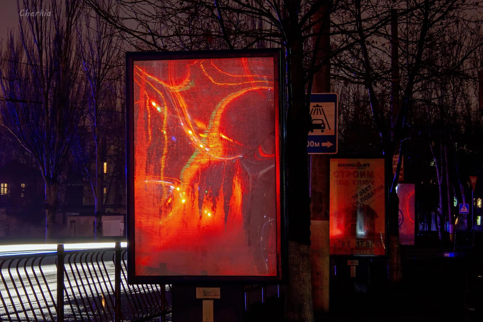 Пустой рекламный щит отразил-преломил свет фар и превратился в драгоценность.