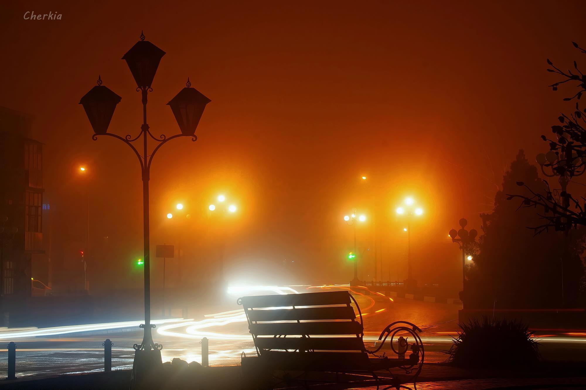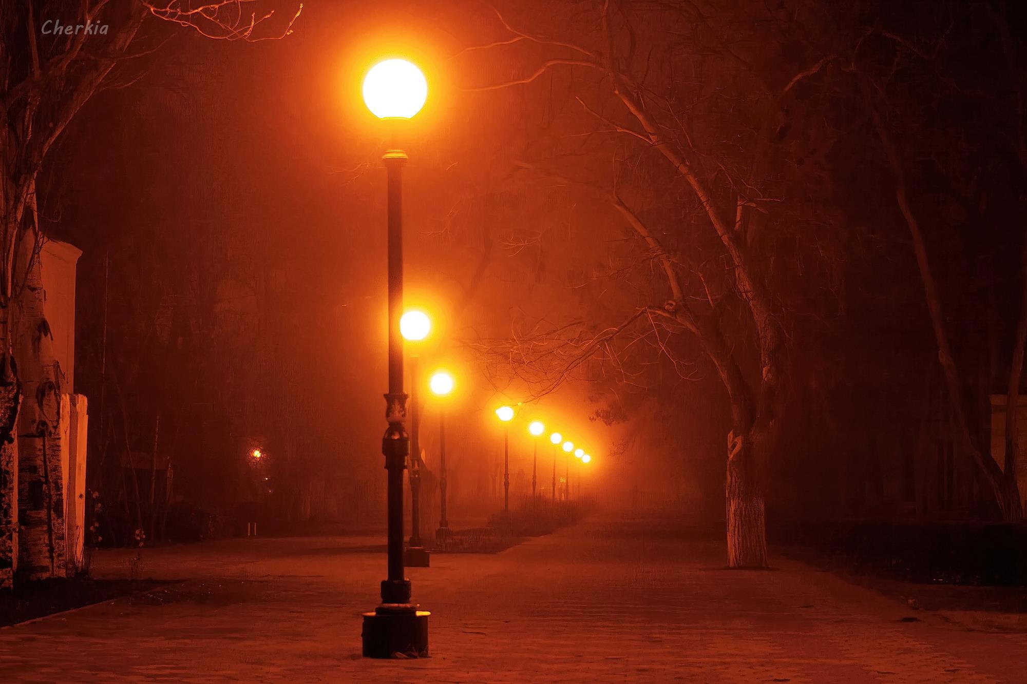 Фонари уводят в туман.