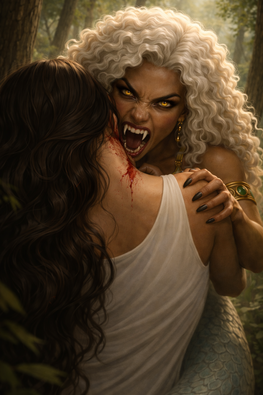 Поддавшись юношеским воспоминаниям, она провела пальцами по белоснежным прядям, словно описывая движения летнего ветра, ласкавшего в те времена её волосы. Лицо Ехидны вдруг стало неописуемо красивым, приобретя девичьи, нежные очертания, но длилось это всего ничего. Как только глаза её ожили реальностью, они тотчас озарились нестерпимой печалью.