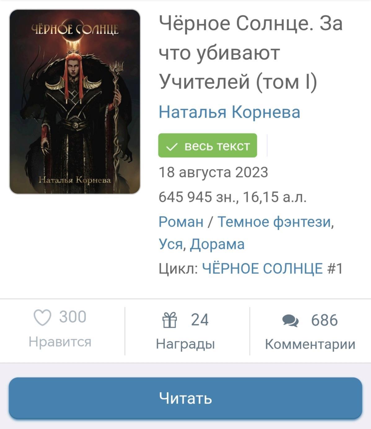 Автор: Наталья КорневаДрузья, поймала красивое число лайков на 1 томе "Черного Солнца"!
